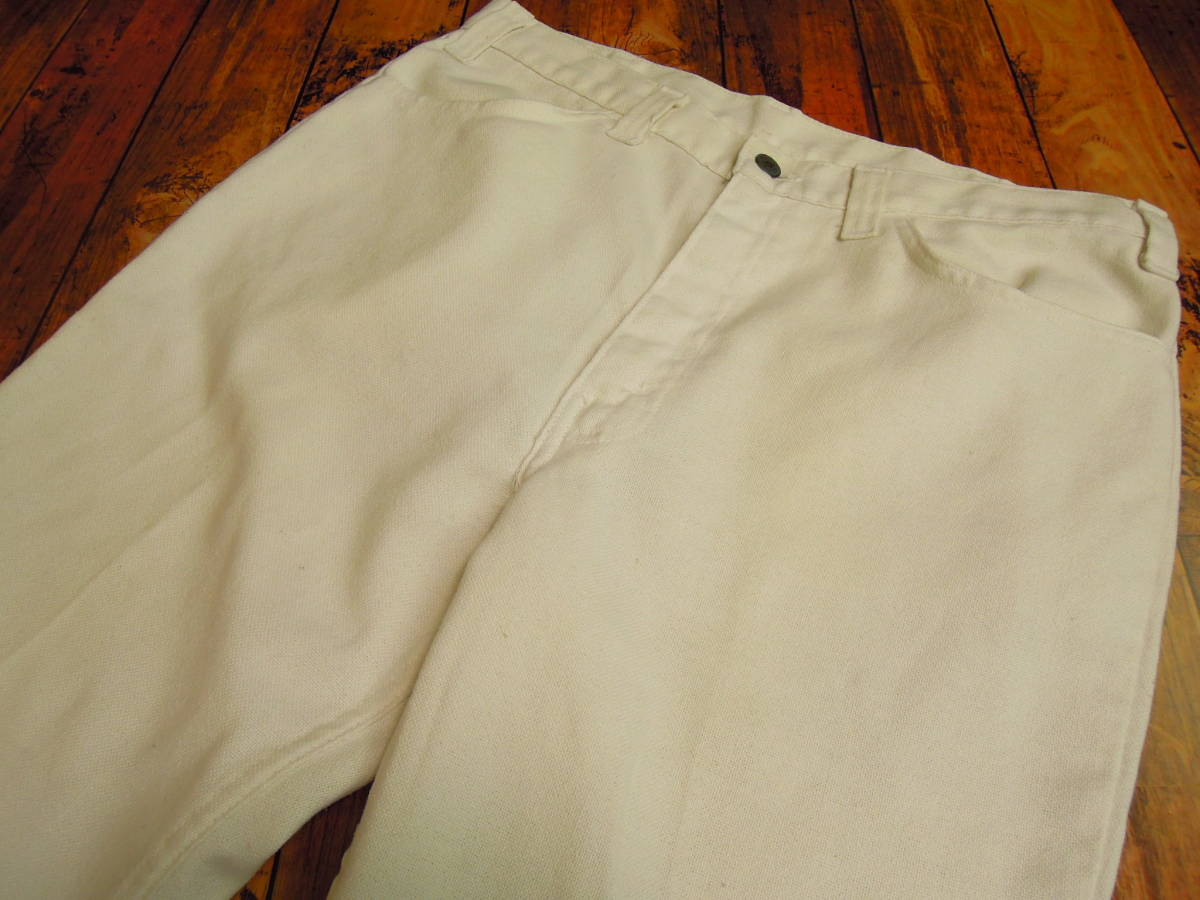 着用に支障となるダメージ等ありません。全体的に経年した質感と小さな汚れがありますが、当方主観では気にならない程度です。生地もしっかりしているので現状にご理解いただければまだまだ穿いて頂けます!