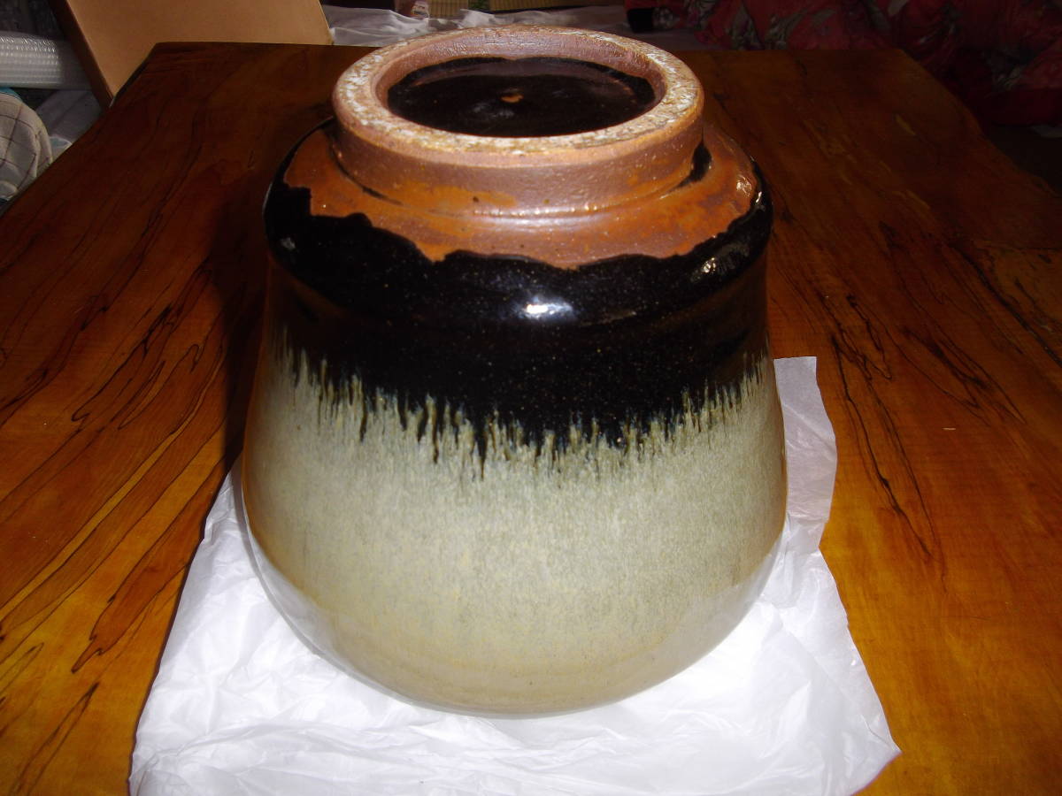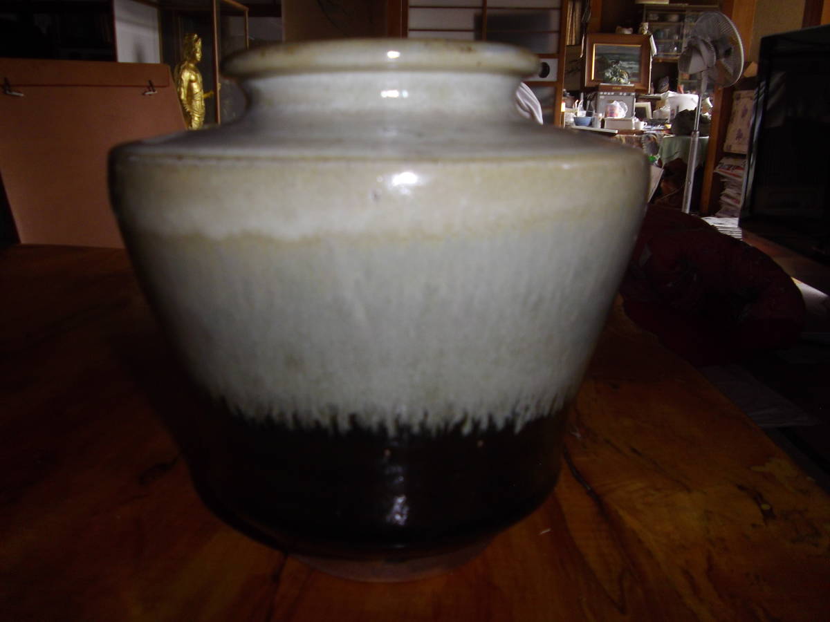 大変珍しい、益子焼の陶芸家、濱田篤也作の掛合釉花瓶となります。人間国宝で文化勲章を受けた、濱田庄司の次男であり、若くして夭折しました。大きさは、高さ30cm、直径20cmあります。なお今回、値下げ致しますので、NC、NRでよろしくお願い致します。