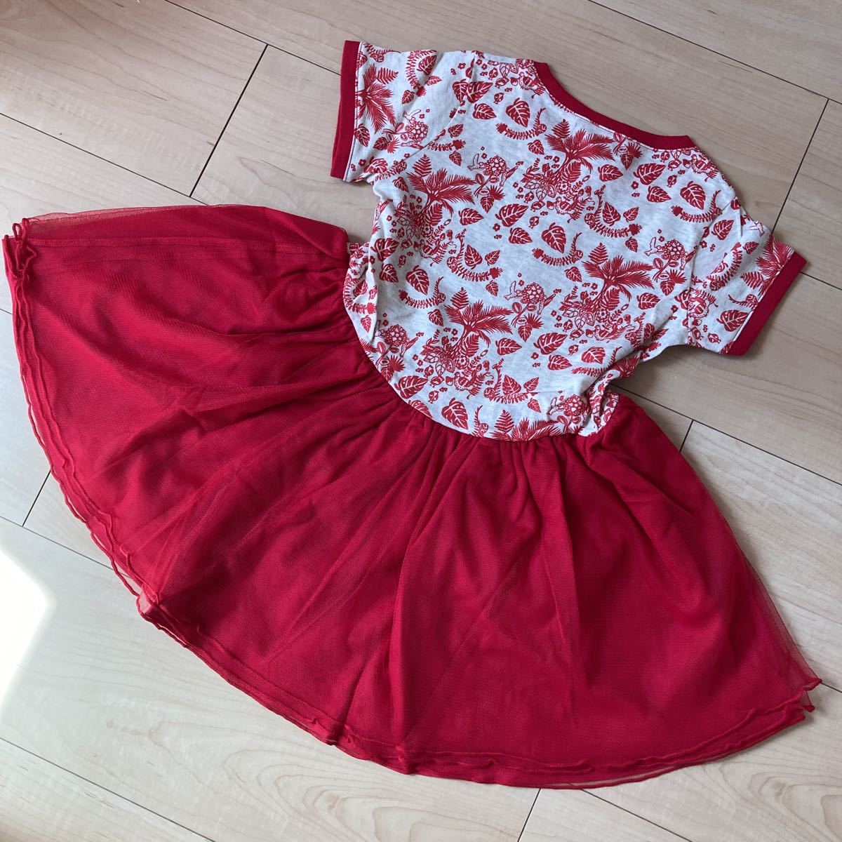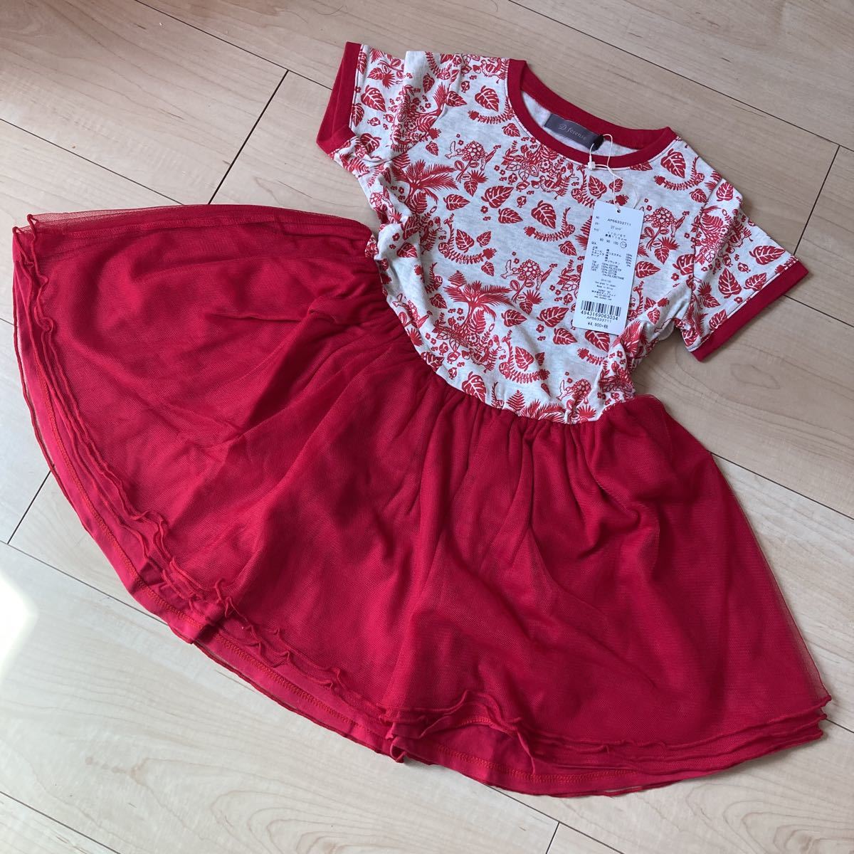 ディーフェセンスの半袖ワンピース、新品タグ付きです。トロピカルなデザインで、とても可愛いお洋服です。