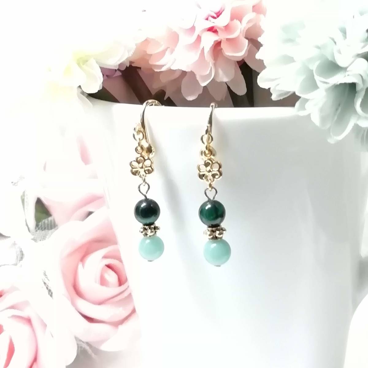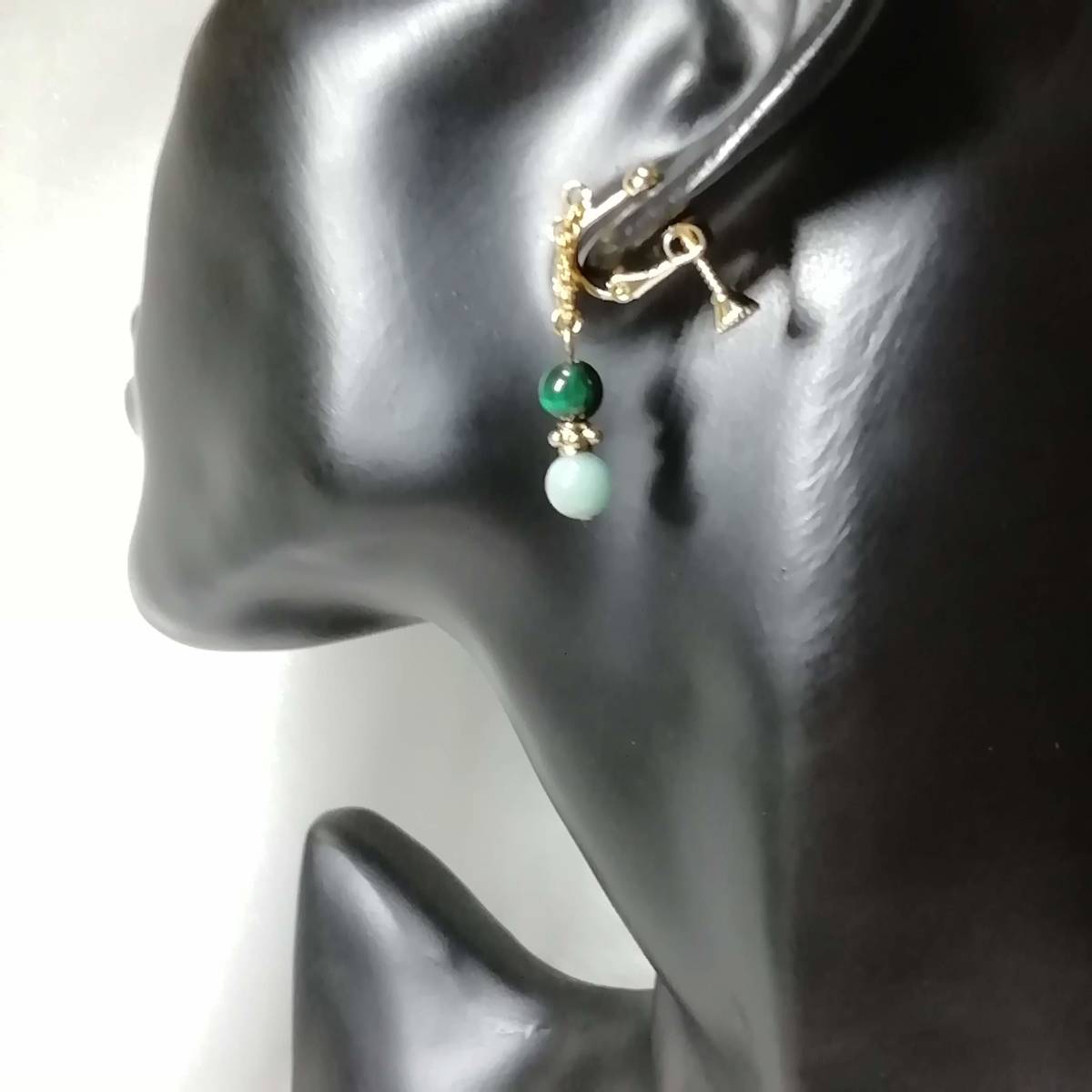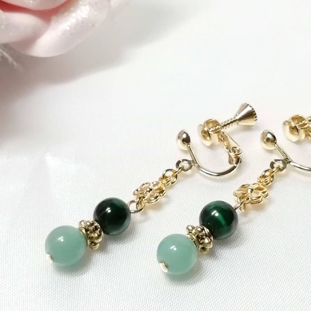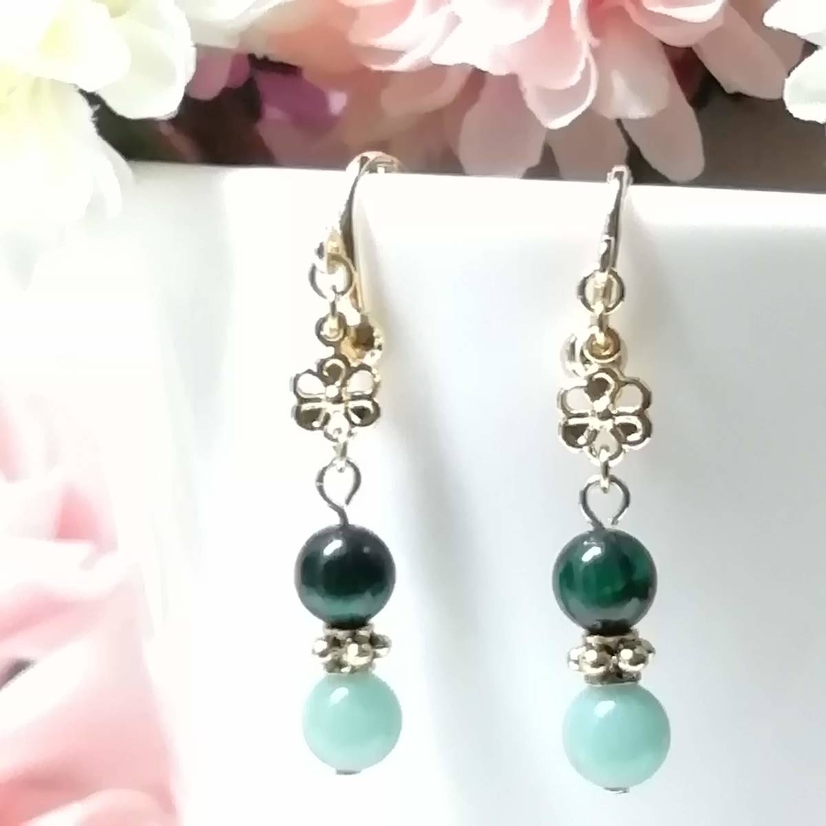 | ★商品内容★ グリーンタイガーアイの短めハンドメイドイヤリング/天然石/上品/タイガーアイ/ゴールド/アマゾナイト/シック/シンプル/短め/緑/フラワー グリーン系の天然石を使った 短めサイズのイヤリングです°??*・**??°*・**. 濃い緑色と優しいミントグリーンを ゴールドのパーツと組み合わせることで シックでゴージャスな大人の女性らしさを印象付けます*・**.。・*・.**.・。 普段使いはもちろん、オフィスにも お出掛けやお洒落のワンポイントにも最適です*・**.。・*・.**.・。 【素材】 天然石グリーンタイガーアイ(緑虎目石)6mm 天然石アマゾナイト(天河石)6mm メタルチャームフラワーゴールド7mmx6mm メタルスモールサタンリングゴールド(ピューター製) カンより垂れ下がる長さは、約3.2㎝です。 Eー765 【天然石豆知識】 ◆◆グリーンタイガーアイ[緑虎目石] ガラス光沢を持った美しい金褐色の鉱物 金色の光線が“虎の目”に似ていることに由来しています。 古代より幸運を招く聖なる石として崇められ、エジプトでは神々の像の目に使用して聖なる視野を表したと言われています。 洞察力や決断力を養って物事を成功へと導き、邪悪な力を跳ね返して金運・仕事運を良くすると伝えられています。 ◆◆アマゾナイト(天河石) ガラス光沢を持った緑色の半透明な鉱物。含有している微量の鉛の作用により緑色に発色します。 実際には産出されませんが、“アマゾン川”に由来しています。 古くから「希望の石」として珍重されてきました。 ストレスを解消して精神と肉体の強化を図り、思考力・創造力などを高める働きがあると伝えられています。 ★注意事項★ ***~ご購入前に必ずお読み下さい~*** *・*・*落札後について*・*・* *落札後4日以内にお手続き、ご連絡が無い場合は落札者都合で削除致します。 *発送日指定・ご入金の予定が1週間以上先をお考えの方は、入札の前に質問よりご連絡くださいませ。 予めご了承の上、ノークレーム・ノーリターンでお願い致します。 *・*・*商品について*・*・* *一点一点心を込めて作っておりますが、手作りなため多少の歪み等あるかもしれません。 手作りの味わいと、世界で一つだけの作品とお考えいただければ幸いです。 *デリケートな商品ですので、強く引っ張ったりすると破損する事もあります。 お取り扱いにはご注意ください。 *ご覧のPC、スマホによっては画像と実物の色味が多少異なる場合があります。 *基本イヤリング金具は跳ね上げネジ付き金具にて作成しております。 **ご希望によりピアスへの変更も承っております。 【フックピアス…無料/キャッチピアス…別途追加料金120円】 *その他…樹脂ノンホールピアス(無料)・カン付き樹脂ノンホールピアス(別途追加料金20円)にも変更をお受け致します。 ~ご注文の際にメッセージ欄よりお申し付け下さい~ 尚、金具変更のご希望が無い場合は、掲載された写真の金具にてお送り致します。 *金属アレルギーへの対応はしておりませんので、ご心配な方はご遠慮下さいますようお願い致します。 *永くご愛用頂くために、ご使用後は柔らかい布等で軽く拭いてください。 *・*・*プレゼント用梱包のご要望もお受けいたします*・*・* *その際は、梱包費用が別途で必要となりますのでご注意ください。 また、ご希望の梱包タイプによって、発送方法が変わりますので、送料が別途必要となります。 プレゼント用梱包タイプ 【袋→100円】 発送方法【クリックポスト(送料無料)】 プレゼント用梱包タイプ 【箱→200円】 発送方法【レターパックプラス(別途520円)】 袋タイプは【合計100円の追加料金】、箱タイプは【合計720円の追加料金】となります。 ◆ご希望の場合は、必ず商品ページをウォッチリストに登録した上で落札前に質問にてお問合せ下さい。◆ ◆ご希望を承り次第、一度出品を取り消し、プレゼント用梱包費用、送料などを追加した金額へ変更し、再出品致します。◆ *再出品後に再度検索して頂く手間が省けますため、プレゼント梱包をご希望の場合は必ずウォッチリストへのご登録をお願い致します。 金額変更後の再出品から3日以内に落札されなかった場合、誠に勝手ながら購入する意思がないとみなしまして、元の金額へ修正致します。 また、修正後、再度プレゼント用梱包のご希望のお問い合わせを頂きましても、お断りをさせていただきますのでご注意ください。 ご不明な点がございましたら、落札前に質問よりお願い致します。 ***ご質問について*** *ご購入前にお願い致します。 日中は仕事をしておりますので、ご返事が直ぐに出来ない場合がございます。 出来る限り早い対応を心がけますが、ご了承ください。 また、発送までには、お振込み確認後、翌日の発送を心がけておりますが、仕事の都合により2~3日程かかる場合がございます。(その際にはナビにてご連絡いたします) お急ぎの場合は、極力対応いたしますが、場合によっては対応致しかねる事もあります。ご了承下さいませ。 | |||