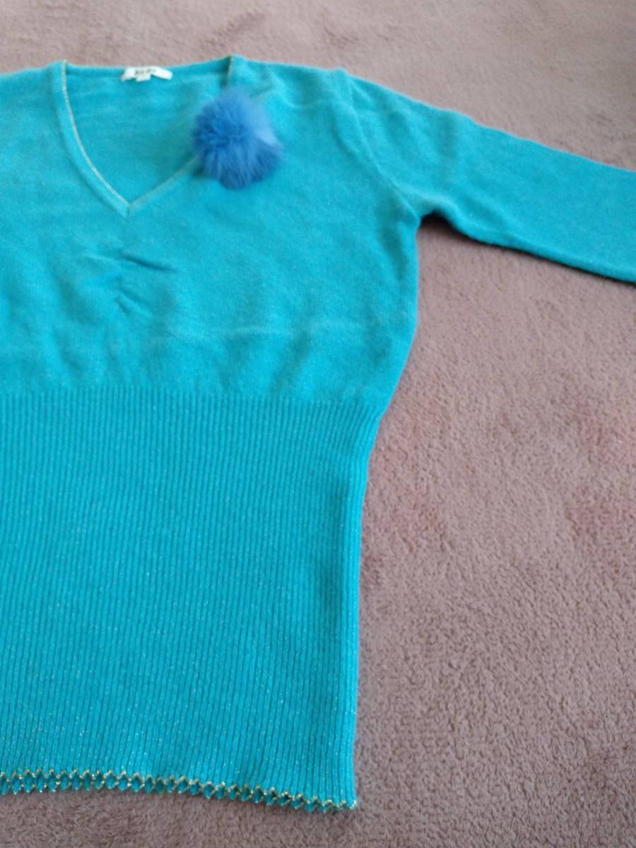 確か未使用品だったと思います。着丈53.5cm、横幅42cm。袖は手首から10cmくらい短いです。ゴールドラメ入り。自宅保管の為、気がつかない点があるかもしれません。そのことを考慮した上で、ノークレーム、ノーリターンでよろしくお願い致します。