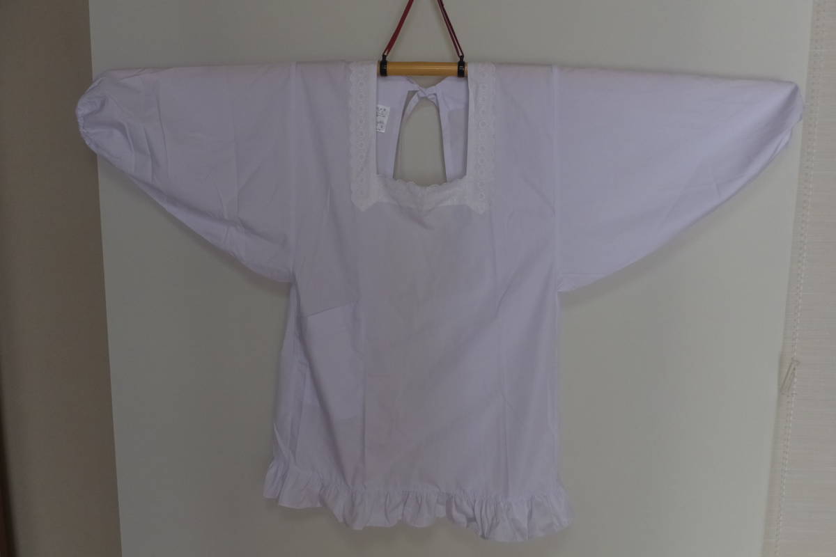 白 割烹着 ポリ65%綿35%Mサイズ 丈80㎝