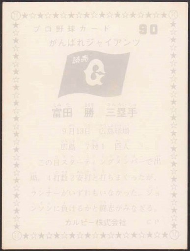 ◆76年カルビー◆がんばれジャイアンツ◆No.90◆富田勝◆