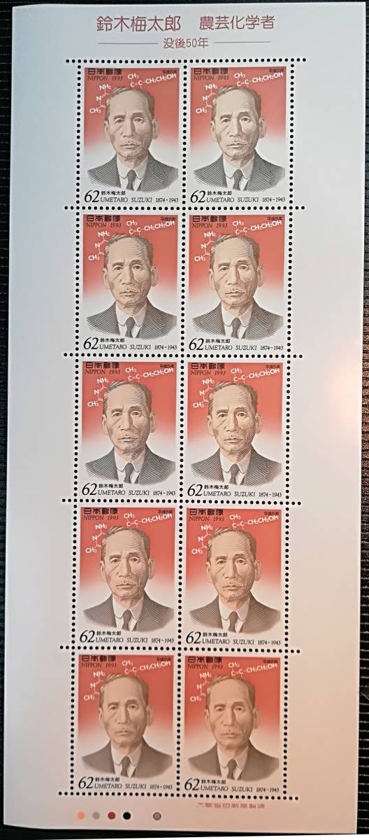 【 鈴木梅太郎 農芸化学者 没後50年 62円x10枚 1シート 】 です。