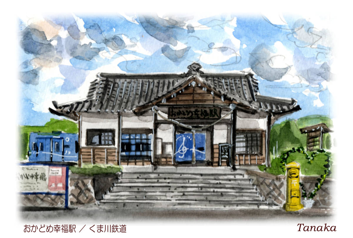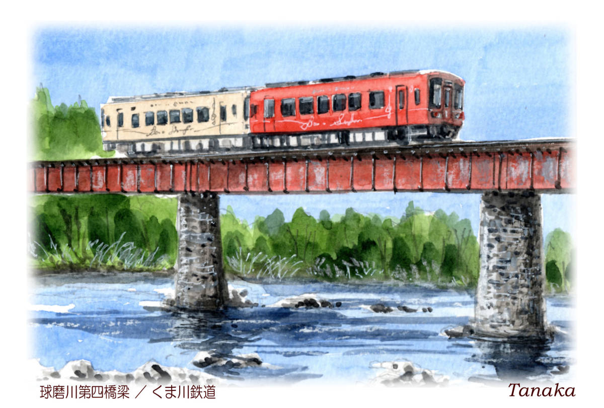 ・四季水彩画の水彩画を印刷した、「くま川鉄道のポストカード」を3枚プレゼントします。