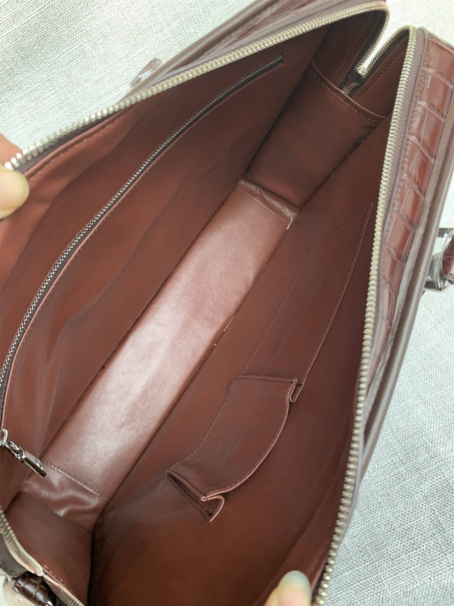 納期に1~2週間営業日ほどお時間がかかります。 当オークションをご覧いただきありがとうございます。入札の際は下記商品説明をよく読み、状態等を確認のうえ入札いただけますようお願い致します。 ID:F0170Z 弊社では、ハンドバッグ、財布、手帳カバー、靴などの製品を提供しますし、それぞれも厳選された高級の天然素材で、職人が丁寧に手作りした製品でございます。 クロコダイル特有の高級感と重厚感を引き立てるエナメルコーティング(つや出し)仕上げは宝石のような輝きです。 ごいくつものパッチワークによって表側を完成させているため皮の色々な部位が楽しめます。 厳選された最高級の天然素材を使い、職人が丁寧に手作りした製品です。 圧倒的な存在感を放つ 最高級リアルクロコダイルレザー!! 極上のクロコダイルがもたらす高揚感を是非味わってください!! 商品は急に売り切れ場合がございますので、ご入札の前に必ず質問で在庫をご確認ください。 【素材】外側:クロコダイル 内側:牛革 【サイズ】 縦:約28cm 横:約38cm 厚み:約8cm (商品によって多少の差がある場合がございます) 【状態】:新品 未使用 |