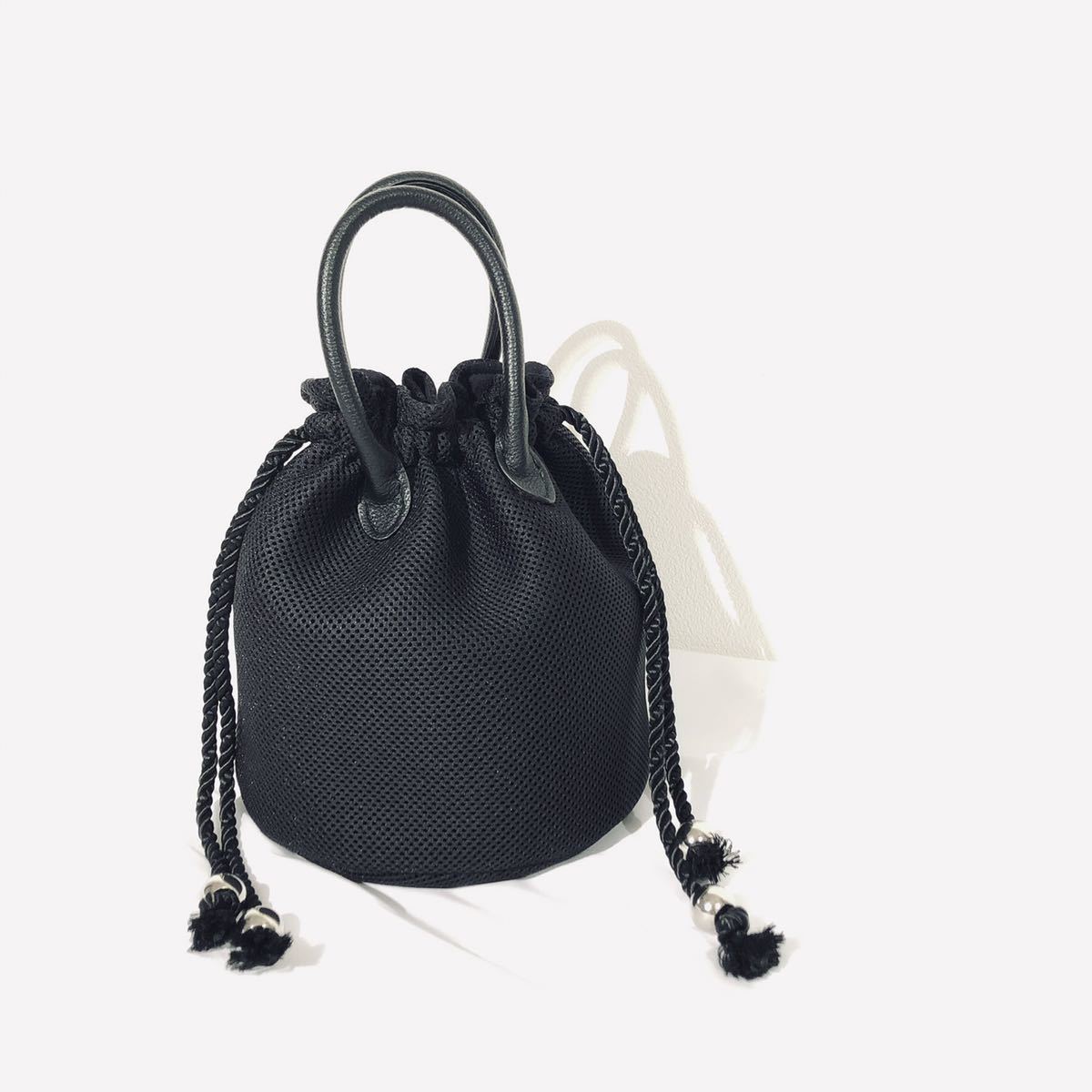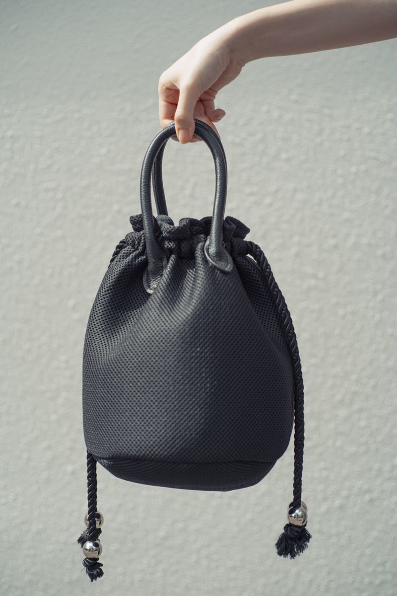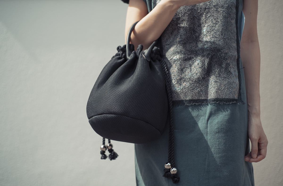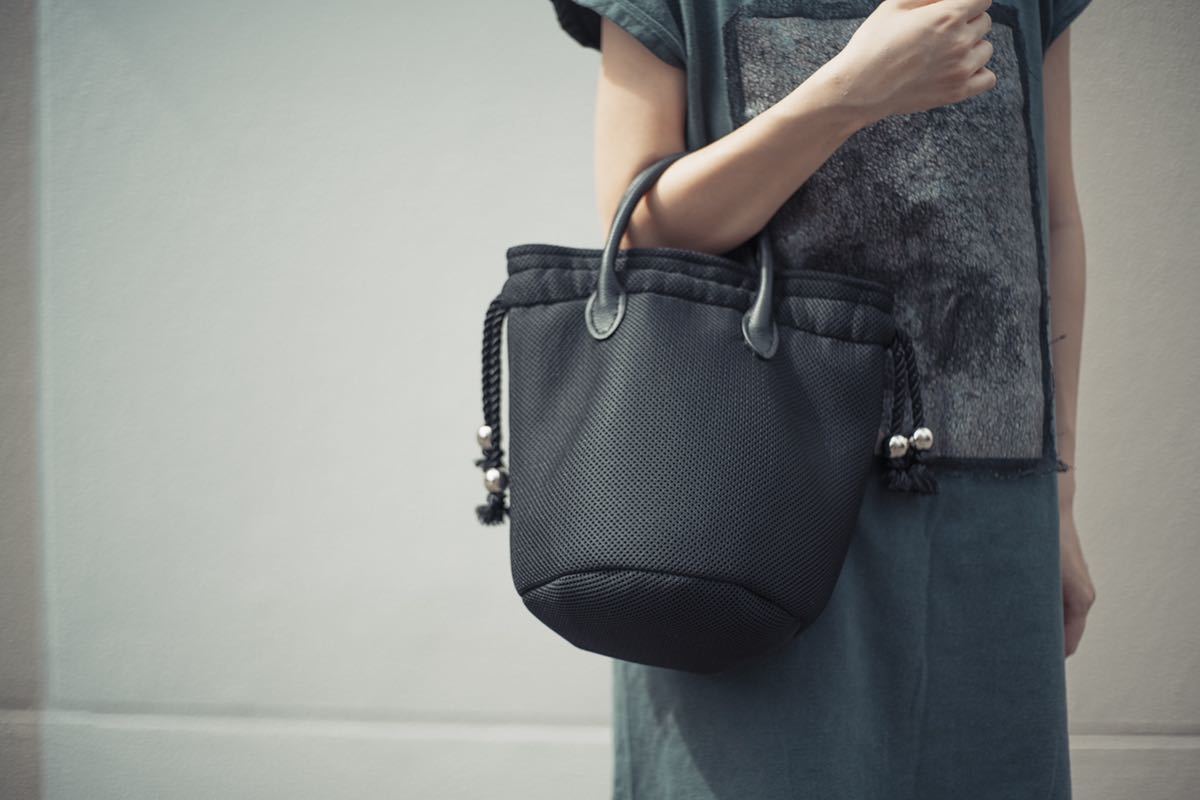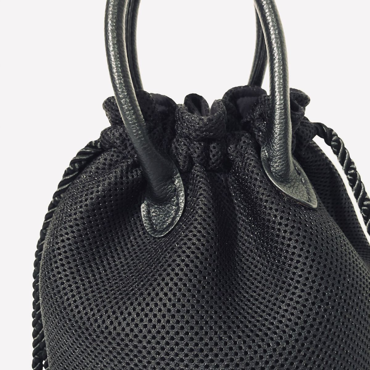 ダブルラッセルメッシュの丸底巾着バッグです。