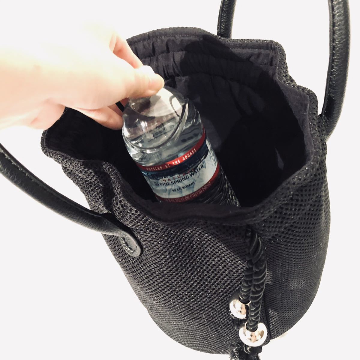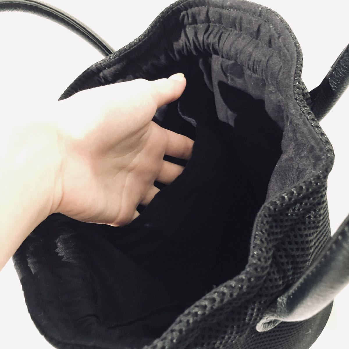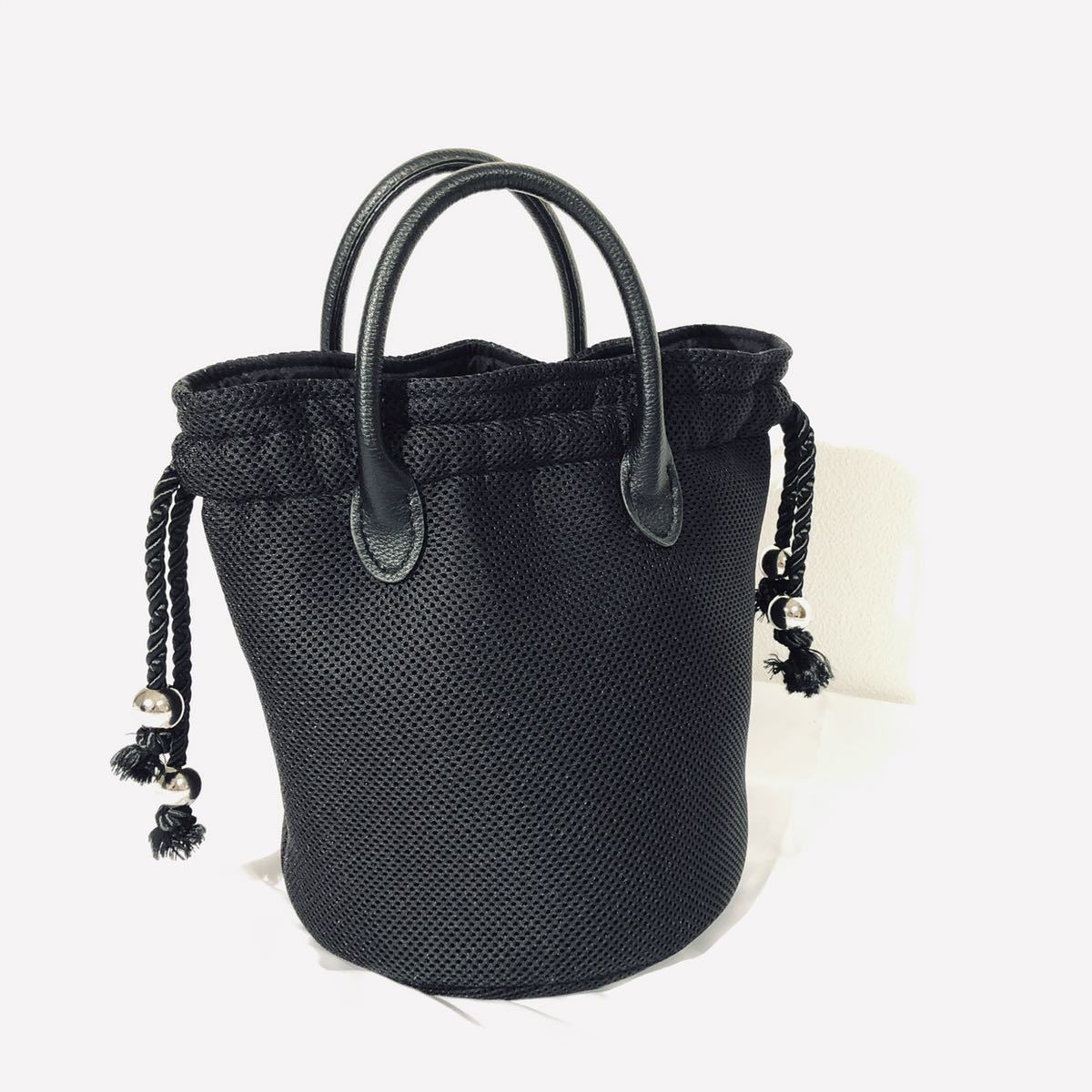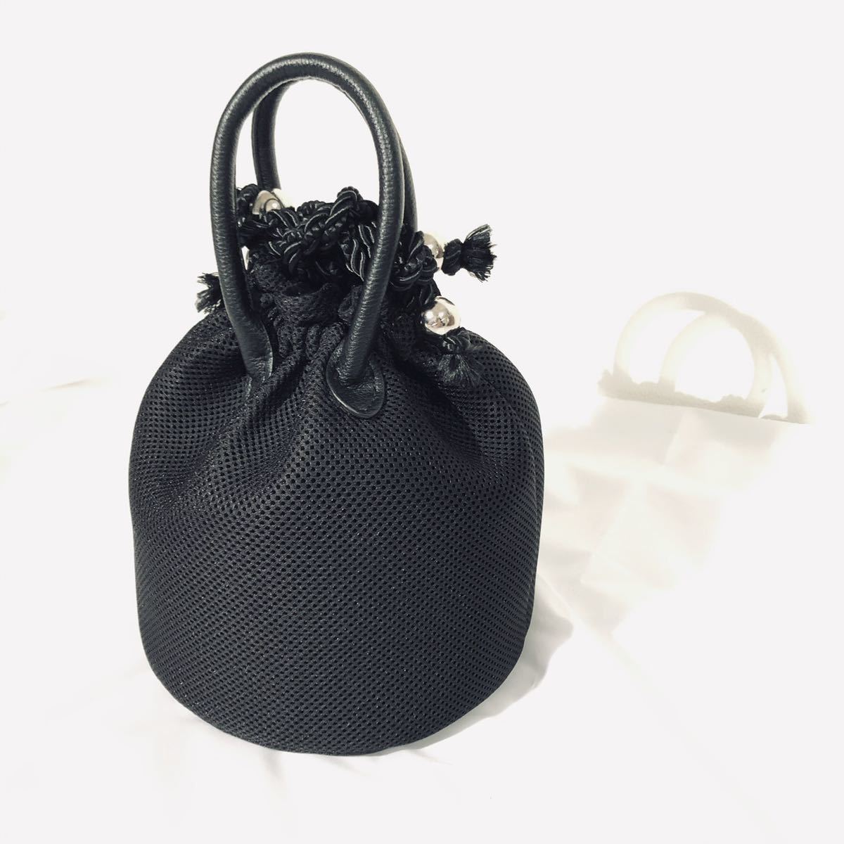 ダブルラッセルメッシュの丸底巾着バッグです。