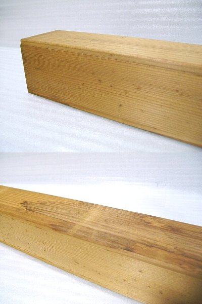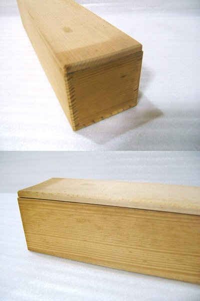 《商品説明》 未使用と思われる木製(モミ)の軸箱(掛け軸空箱)になります。 経年に伴うシミ、ヤケ、汚れ、水染み等ございます。 画像はサンプル写真になりますが、状態が一点一点微妙に違う為、 状態の説明は割愛させて頂きます。 掃除はホコリを取る程度しか行っておりません。 届いた商品にガッカリされる場合もあるかと思いますが、 表面の見た目上の劣化がある事を御留意くださいませ^^ 尚、大切な掛け軸の用心箱として使う強度は充分にあると思います。 ⑦内寸長さ45cmの軸箱1個になります。 内寸=45cm×6cm×6cm 外寸は割愛させて頂きます。 | |