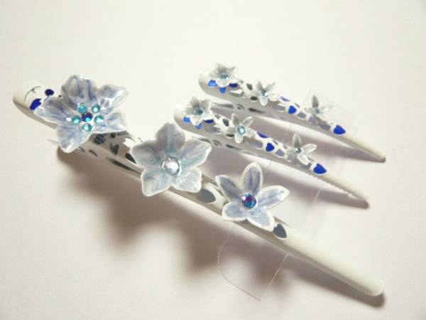 お花の同じモチーフのデザインのクチバシクリップをサイズ違いで3本セットにしました。 | ||