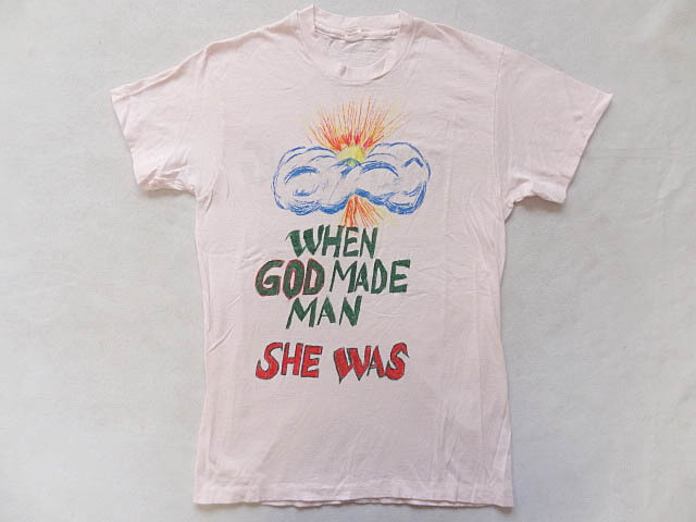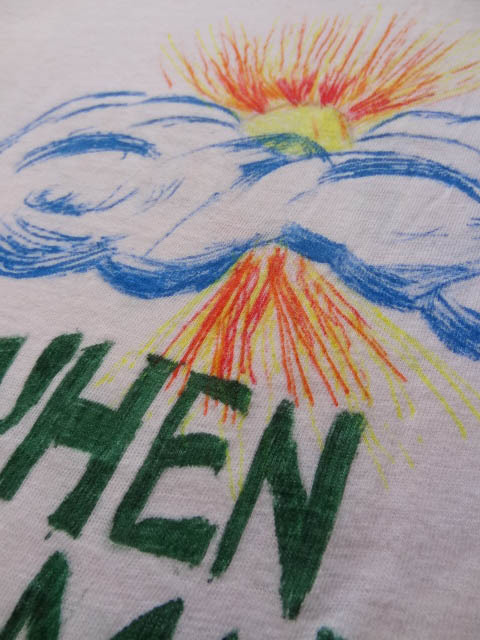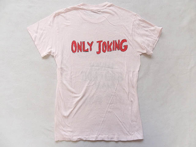貴重な落書きTシャツです。ボディも70年代の希少カラーの淡ピンクです。探してもまずみつからない一枚です