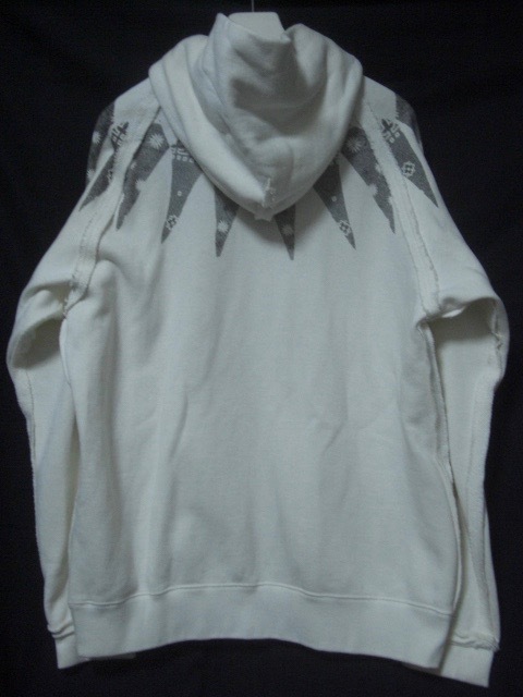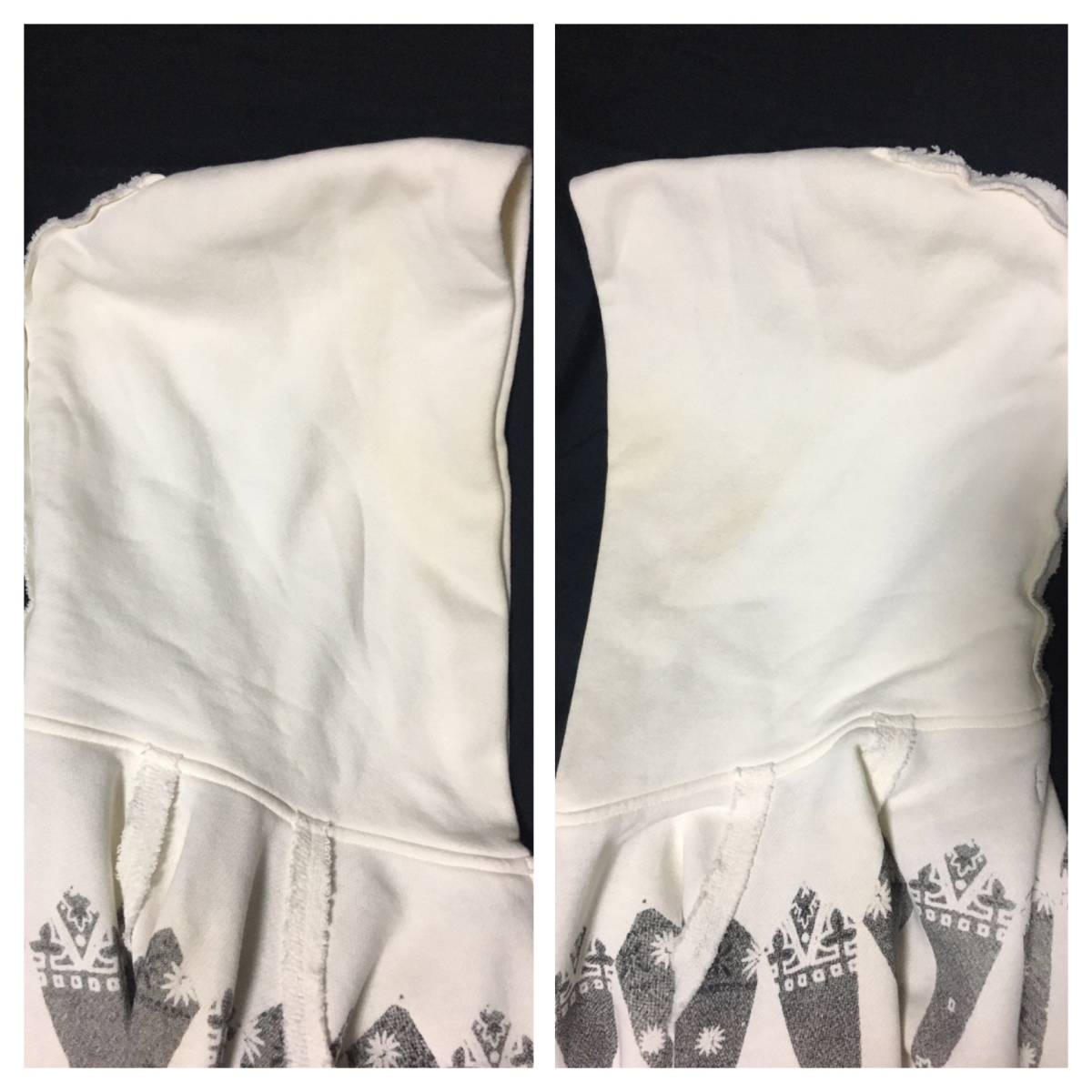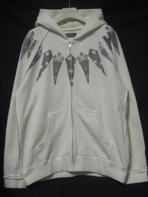 | 中古 使用感は少なく良好ですが長期保管によりフード部分に黄ばみ感、右ポケット上に黒い汚れがあります、他は画像のように袖も綺麗な状態です | ||
