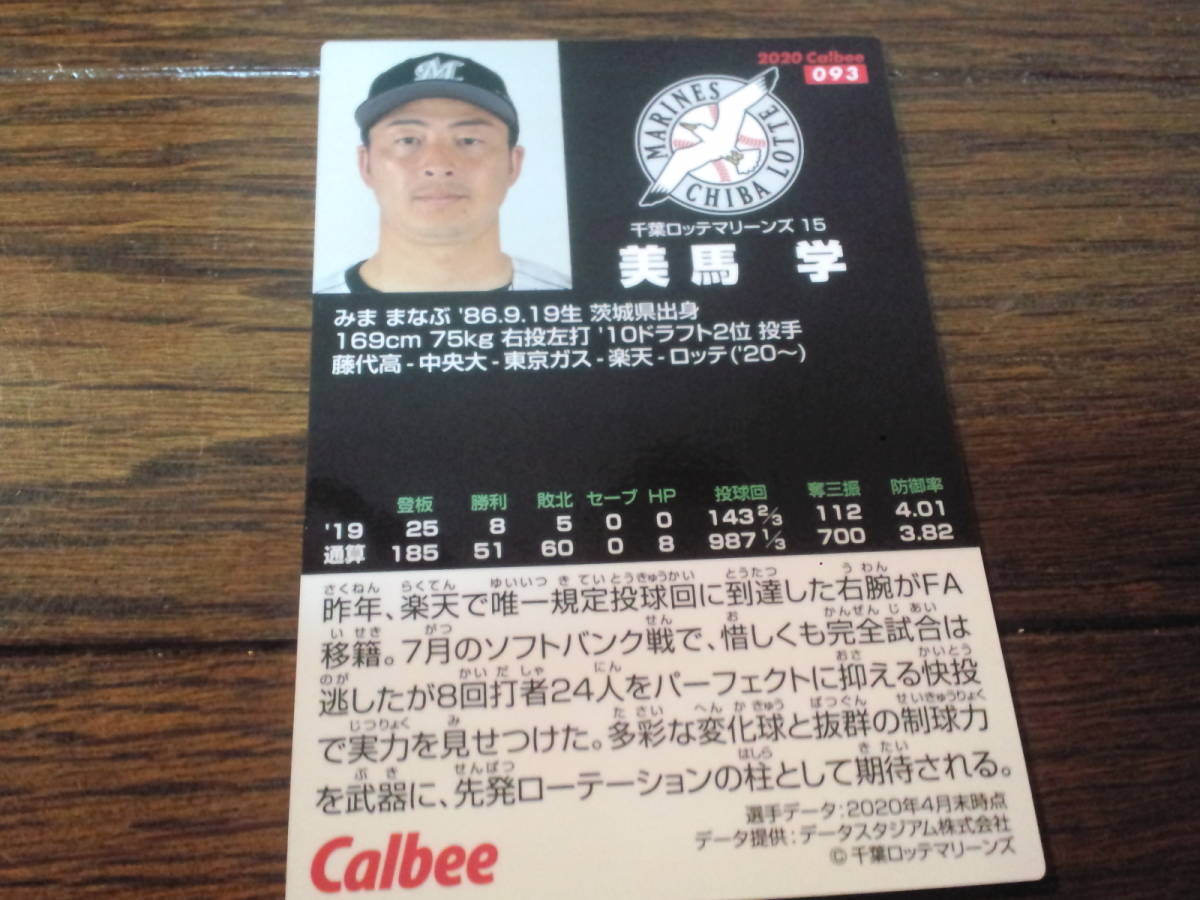 [同梱可]★美馬学(千葉ロッテマリーンズ)★レギュラーカード(093)☆2020年カルビープロ野球カード第2弾
