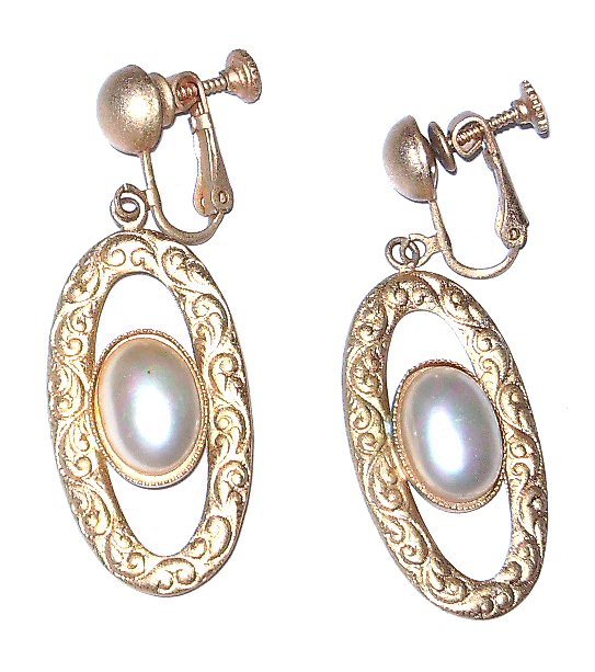 ◎ゴールドとパールの品格あるデザインが素敵なボリューム・イヤリングです。大人の装いを知的エレガントに彩ってくれると思います。たくさんありまして整理中です。如何でしょう★