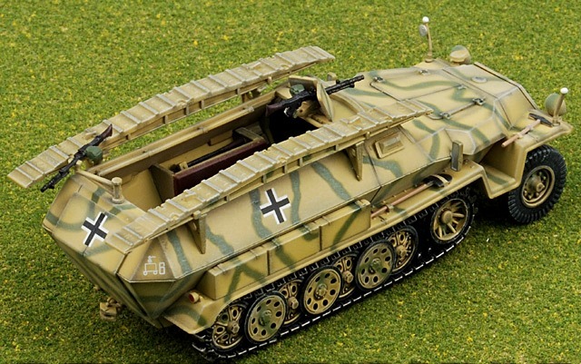 商品紹介 | ダイキャスト製完成品 Sd.Kfz.251/7 Ausf.C ドイツ中型装甲兵員輸送車C7型 突撃用橋梁搭載 クルスク 1943 Dragon Models 1:72 Armor Collector Series 60277 Hanomag Sd.Kfz.251 Schutzenpanzerwagen Display Model German Army, Kursk, USSR, 1943 メーカー:ハセガワ/ドラゴン ドラゴンアーマーシリーズ 塗装済み完成品 スケール:1/72 シリーズ:No.60277 新品です ●第2次大戦下におけるドイツ軍「Sd.Kfz.251/7 Ausf.C 装甲工兵車 クルスク 1943」を1/72スケールで再現した彩色済完成品モデル ●「Sd.Kfz.251 Ausf.C」のバリエーションのうち小型突撃橋などを装備した「Sd.Kfz.251/7」の「クルスク 1943」で見られた2色迷彩塗装の車体を再現しています ●ダークイエローをベースに、オリーブグリーンの帯を車体に走らせたマーキング、また、車内も塗りわけてあります ●また、塗装のほかにウェザリングのきいた塗装を施され、重量感溢れる仕上がりとなっています ●機銃は旋回させる事ができます ●プラ製コレクションケースも付属しています こちらのサイトが参考になるのでご紹介します ここをクリック 梱包サイズ:60サイズ 重量:500g以下 (実際のサイズ・重量と異なる場合があります) 定形外郵便での発送をご希望の場合、郵便事故の補償は当方では致しかねますのでご了承願います。 他の商品と同梱発送が出来ますので、もし他にご希望の商品が有る場合はご検討ください。 他にもたくさん出品していますので「出品者のその他のオークション」もご覧ください |