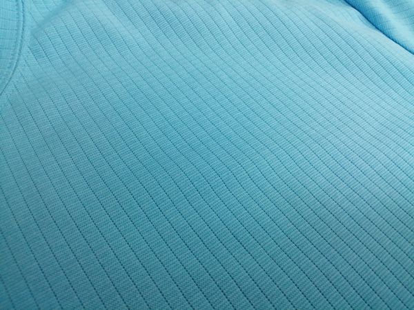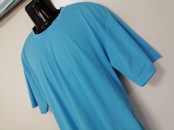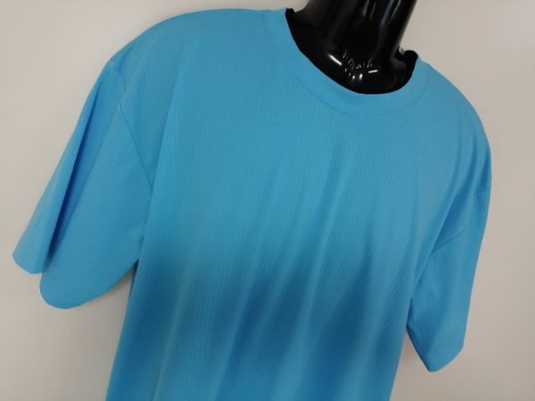 畝のあるドライ生地の明るいブルーのTシャツです。