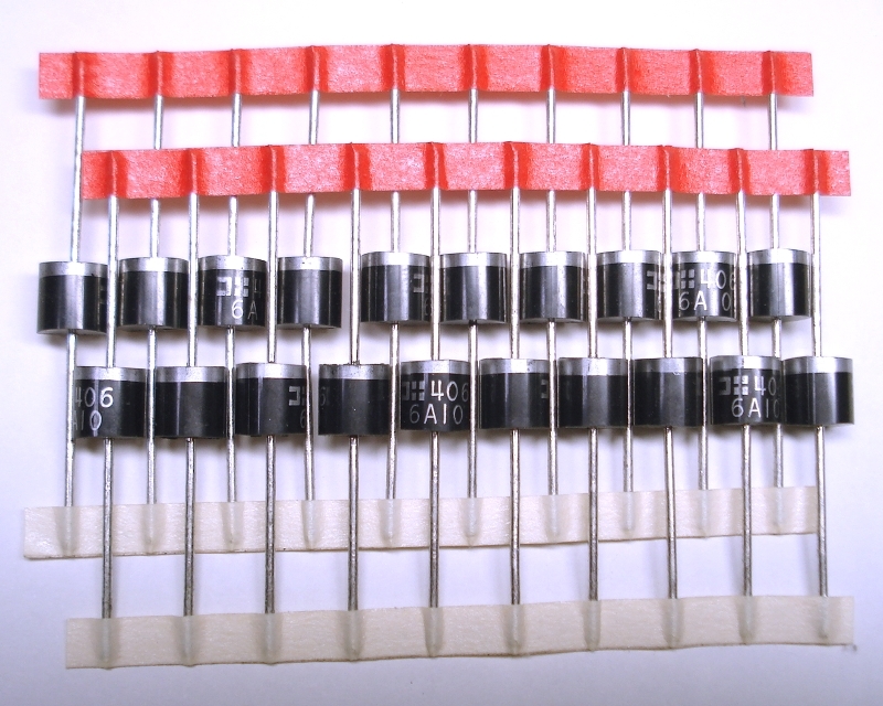 商品説明 | Diodes Inc製 6A10 (1000V6A) R-6パッケージ 1パック(20本入) 1,000円です。 在庫は十分ございますが、品切れのときはご了承ください。 |