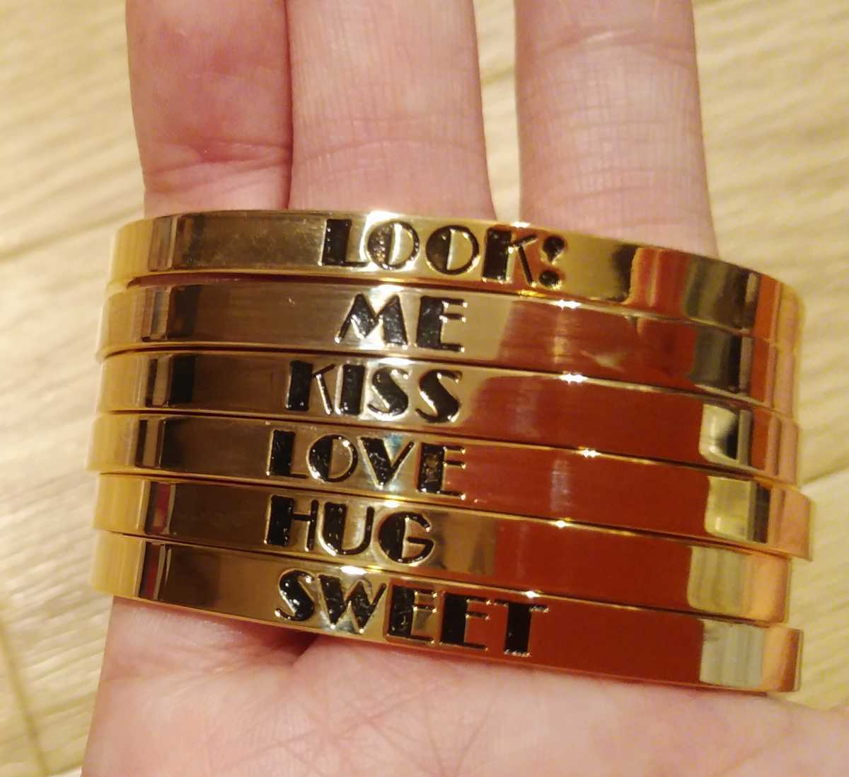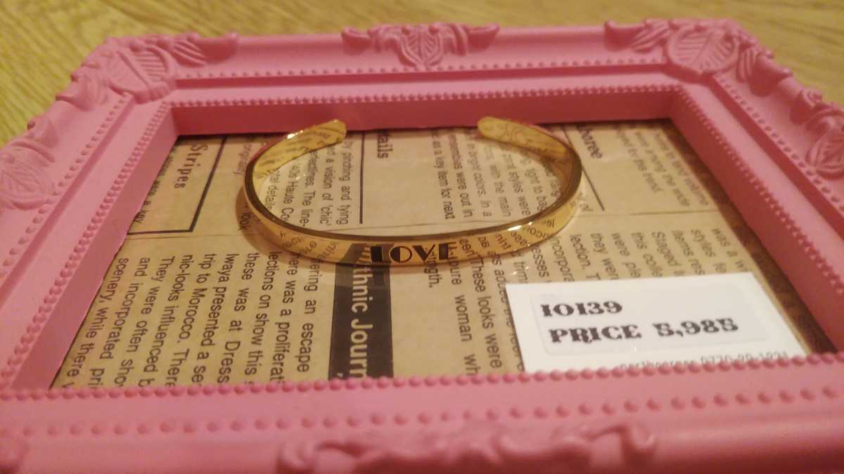 こちらはタグ有り、タグ無し両方有りますがすべて未使用新品♪ NORTHCORNERの商品です!! だいたい回りが17,5センチ位、厚みが5ミリ程です♪ 素材は24Kコーティンキングです♪ 細身のバングルに、黒でLOVEの印字がなされたキュートなバングルです(#^.^#) 1点でも、複数のメッセージを重ね着けしても素敵だと思います♪ 画像が出品商品そのものですのでよく御覧の上、神経質でない、NCNRで御了承いただける方のみどうぞ宜しくお願いします♪ 他にも沢山可愛い商品を色々出品しておりますので是非ご覧下さい(^_-)-☆ まとめて取引はごめんなさいですが、同梱は大歓迎です♪ 必ず自己紹介をご覧くださいませ!! | |||