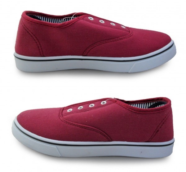 1円~2344-010新品AAAローカット/スリッポンスニーカー23㌢WINE♂