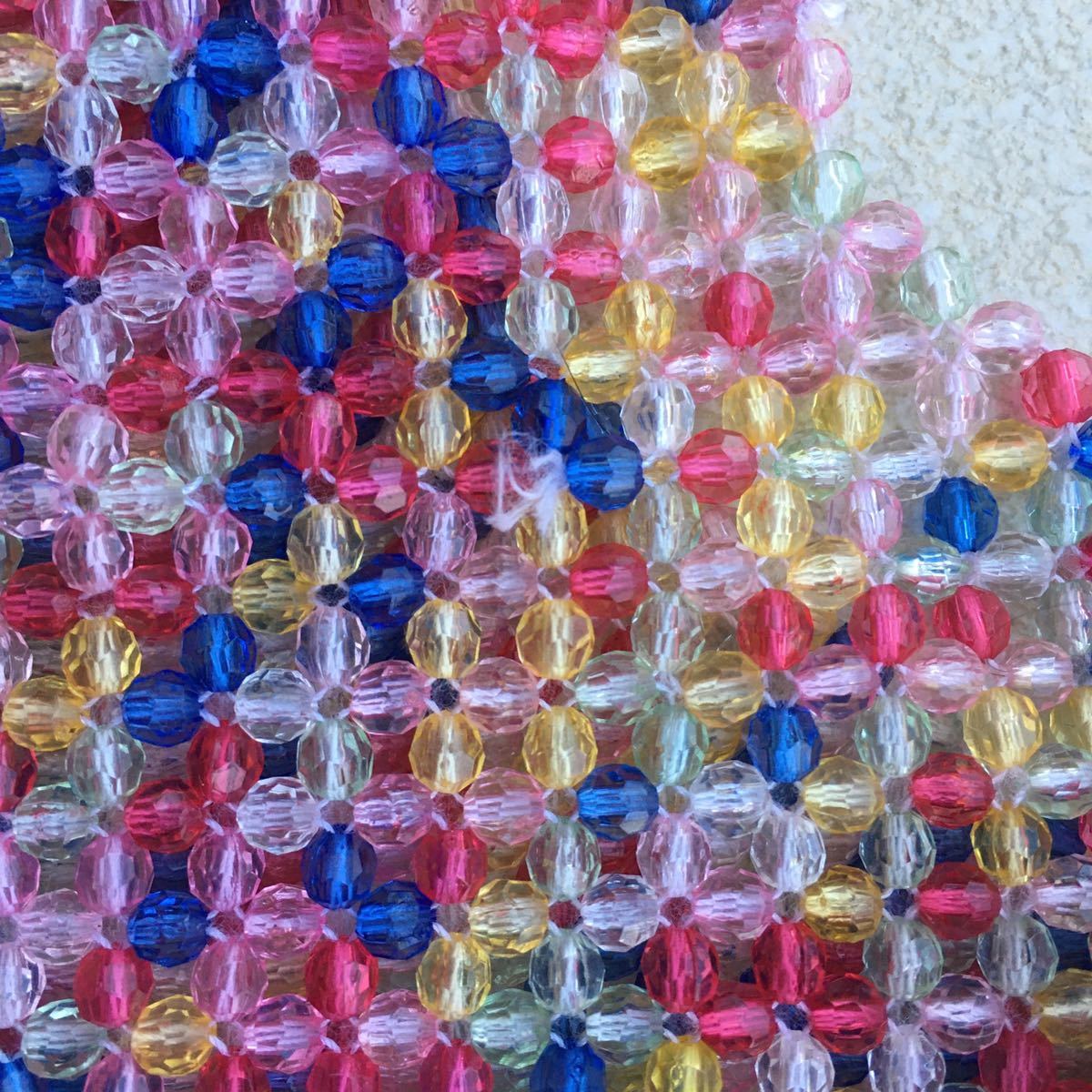 ビーズ繋ぎ目部分の糸出がちらほら有ります。写真8.9枚目参照