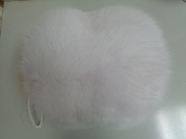 • かわいらしいホワイト・フォックス毛皮ファー・ハンドマフ。ハンド・ストラップつき。