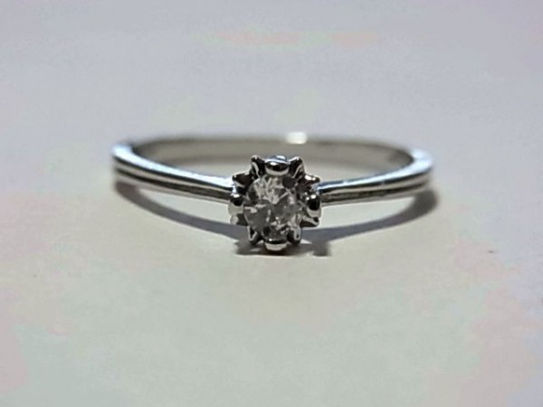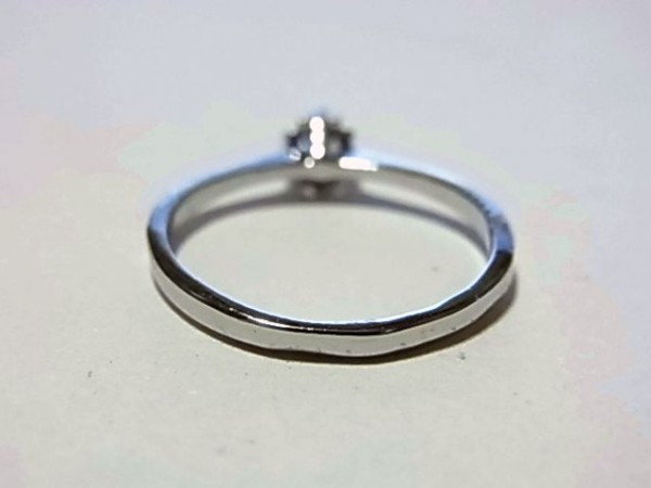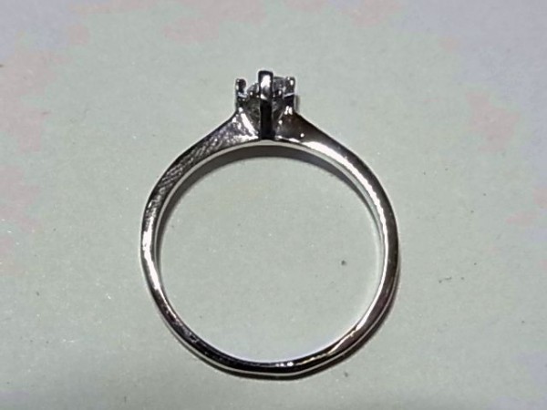 未使用品です。ノーブランドのリング(指輪)です。サイズは約15.5号です。若干大き目なキュービックジルコニア(人工ダイヤCZ)が立爪で1粒嵌め込まれています。素材刻印がありませんので素材は不明です。色はシルバー色です。サイズが合えば女性(レディース)の方にも良いと思います。最初から小キズやくすみや変色等はあります。以前新品で購入し保管していただけの商品です。付属品はありません。