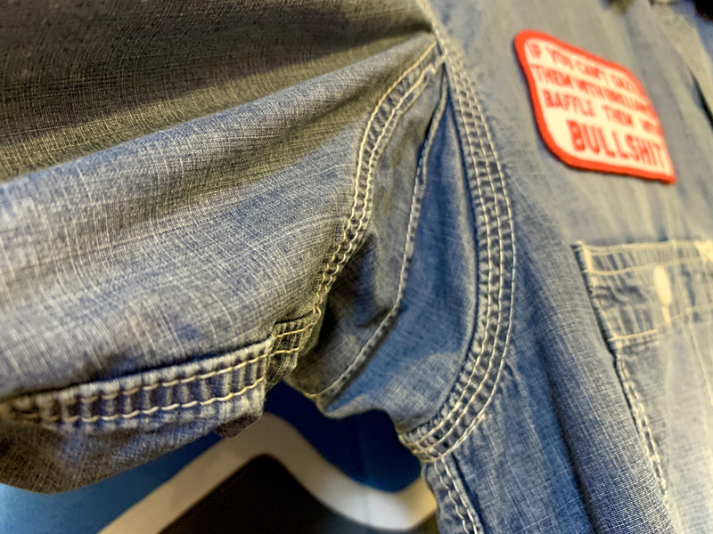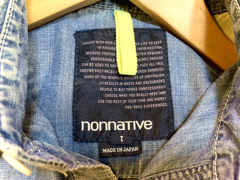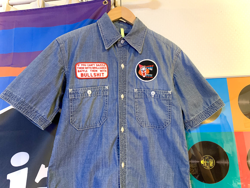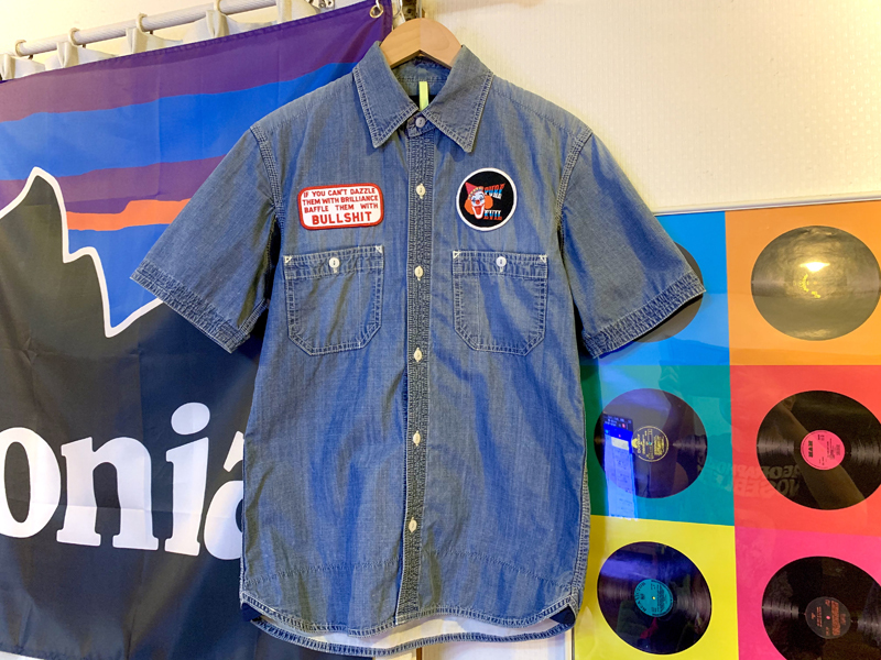 NONNATIVE ノンネイティブ 半袖 デニムシャツ ダンガリーシャツ ワッペン カスタム グッドデザイン 猫目ボタン サイズS Made in Japan