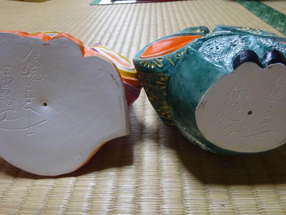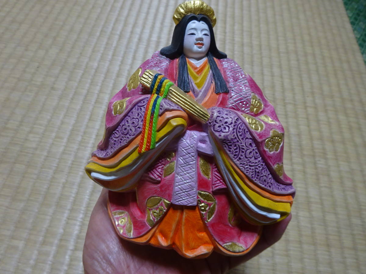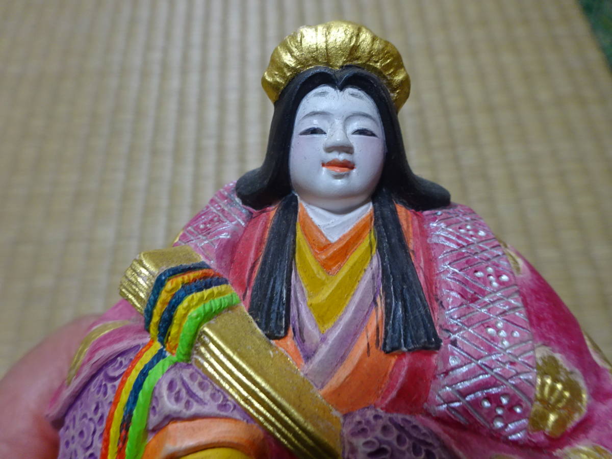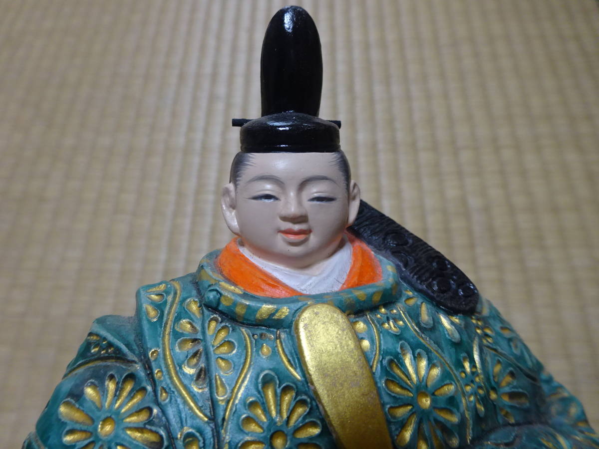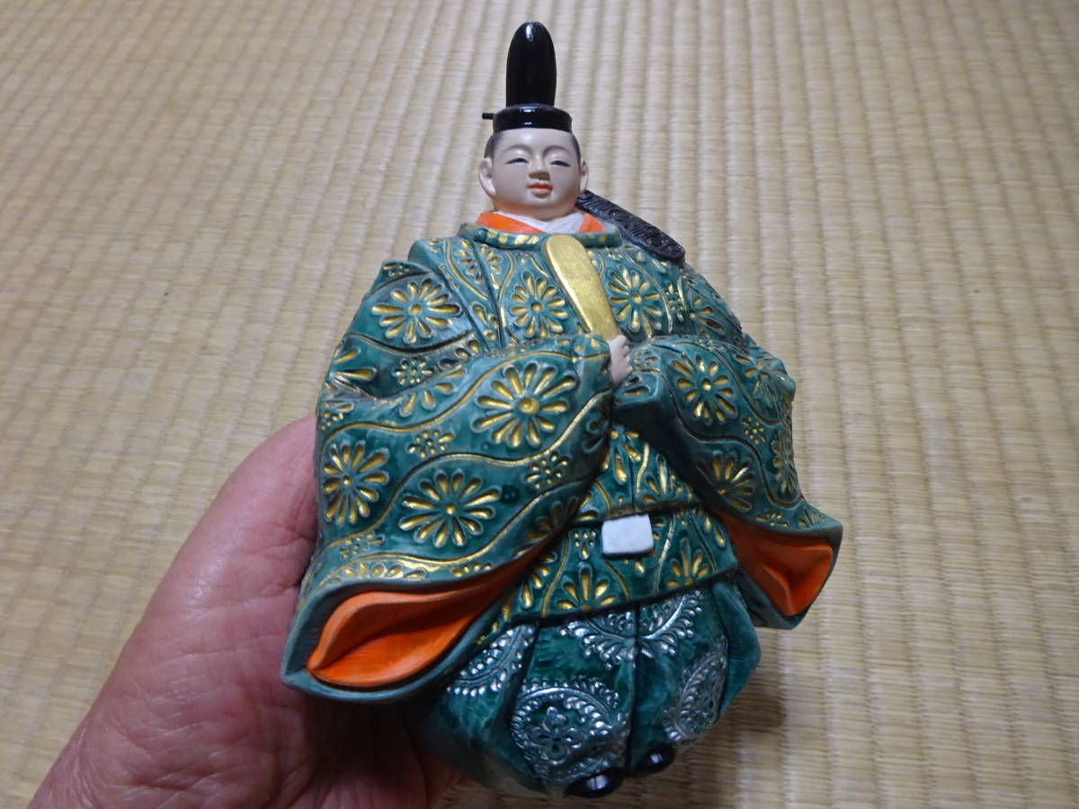 男雛の身長約17cm(帽子含む)、女雛の身長約14cm(髪飾り含む)です。細密な作りと絵付けがとても重厚で華やかなので存在感のある美しいお雛様です。黒い四角台(木製)と作者肉筆の絵柄の屏風付きです。抹茶碗は大きさの比較のためで付いておりません。出品しております商品は中古品やアンティーク品です。充分点検しておりますが、僅かな見落としがある場合はご容赦下さい。また、色合いも忠実に再現できない場合もありますのでご理解下さい。完品をお求めの方や匂いが気になる方、神経質な方のご入札はお控え下さいませ。また、いかなる理由があっても入札後の取り消しには応じられませんので慎重なご入札をお願い致します。24時間以内にご連絡頂ける方、3日以内にご入金頂ける方のご入札をお待ちしております。お取り置きは10日位までお受け致します。郵パックは元払い(80サイズ)でお送り致します。