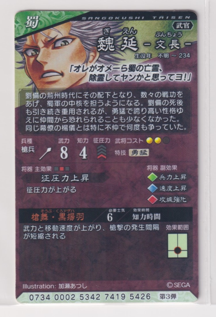 三国志大戦5 蜀 3弾 R 魏延 槍舞・黒揚羽 征圧力上昇 コレクション用