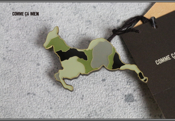 コムサ系のメインブランド、コムサメン(COMME CA MEN)の新作迷彩動物ピンバッジ。