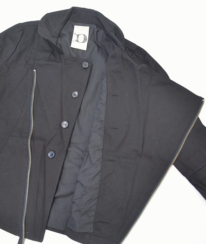 ・素材:コットン100%。 ・カラー:ブラック。 ・サイズ:S。 実寸:肩幅 約40.5cm・身幅 約52.5cm・着丈 約64cm・袖丈 約61.5cm。(多少の誤差はお許しください) LHPでも取り扱いのあった「D DRAW DESIGN CREATION(ドロウデザインクリエーション)」の斜めジップジャケットです。 大きめのジップタブ、大胆に斜め配置されたジップがポイント。 ボタンでも開閉ができ、様々なアレンジでシルエットをお楽しみいただけます。 新品同様、Sサイズ着用モデルは身長171cm、体重66kg、普通体系です。 かなりお値打ちだと思います。この機会にぜひ!。 他にもいろいろ出品しています。 管理番号:011904MY-052781 PD272312-200 |