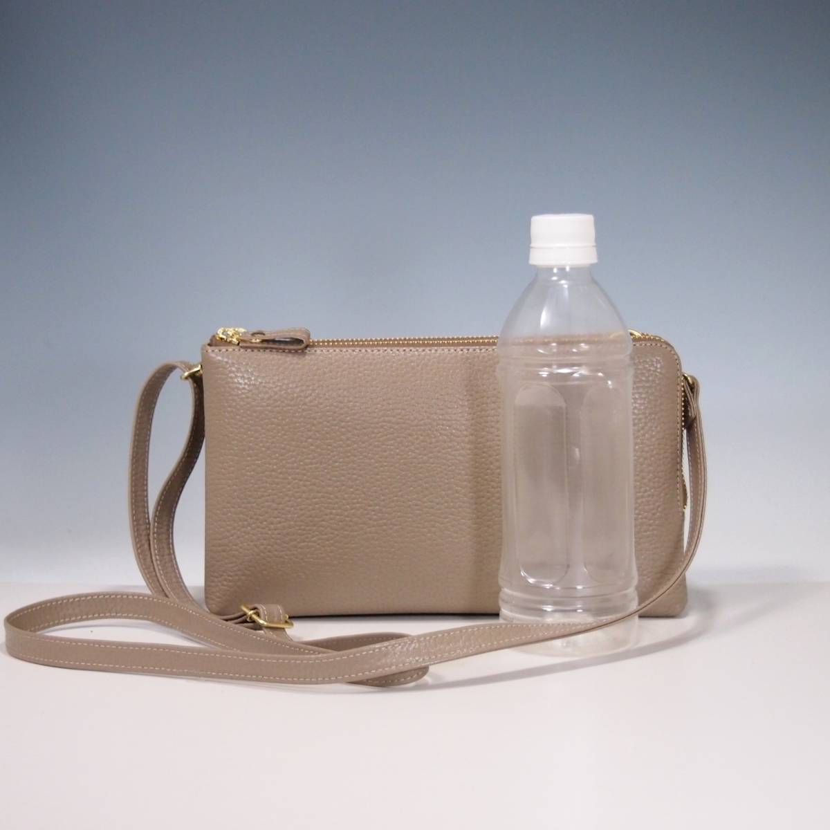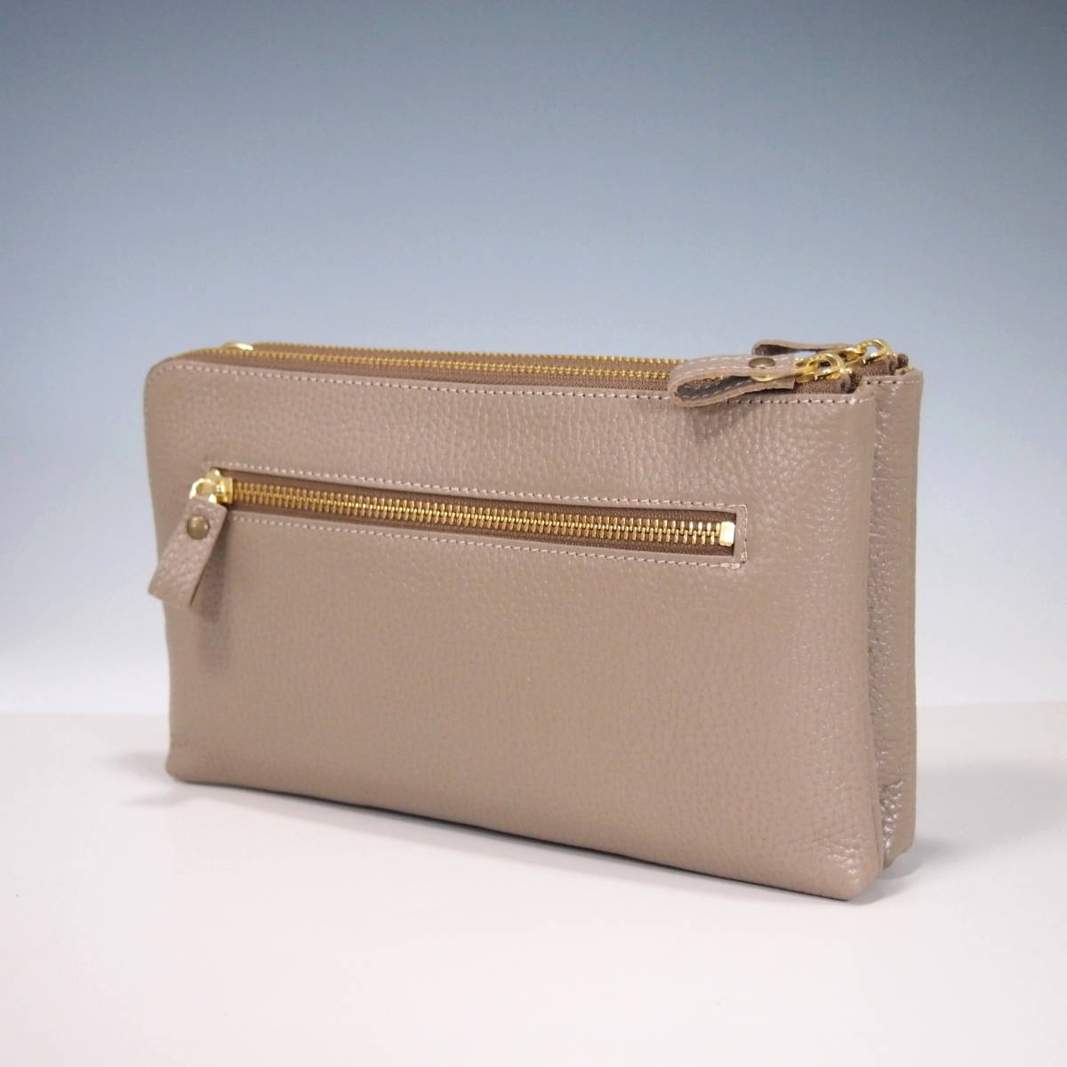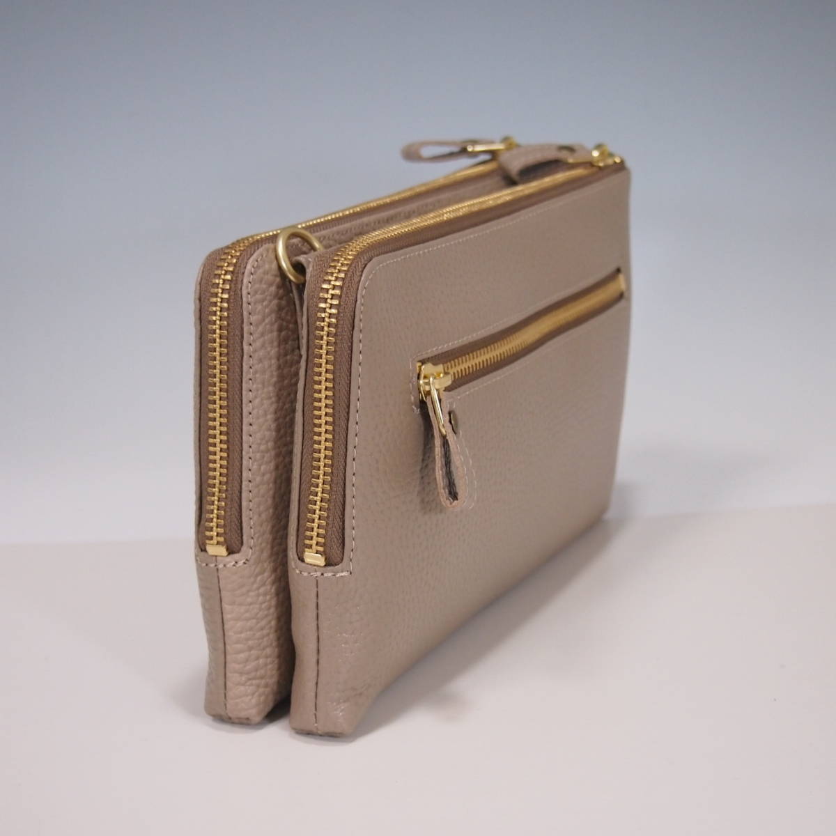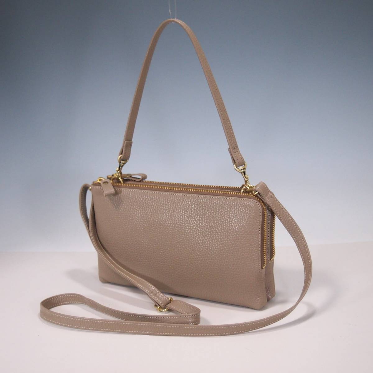★新品★ハンドメイド★日本製★ソフト本革★お財布ポシェット★ダブルファスナー★ハンドル付き(取り外し可)★ショルダーバッグ★トープ
