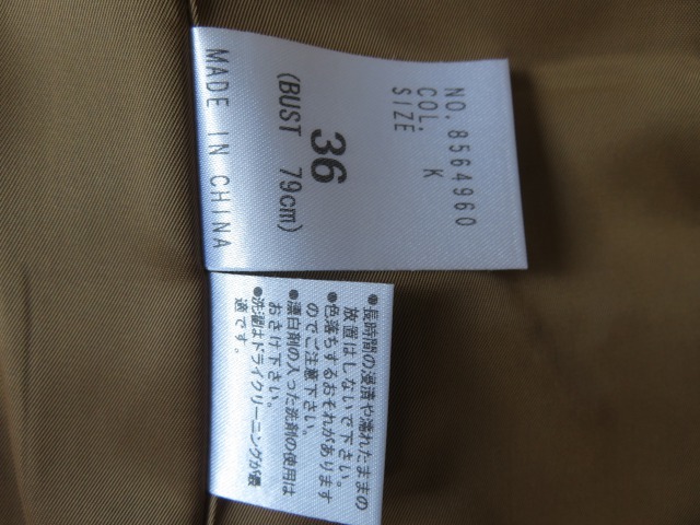サイズ 【36】ジャケット身幅42㎝ 丈58㎝ 肩幅38㎝ 袖丈57㎝