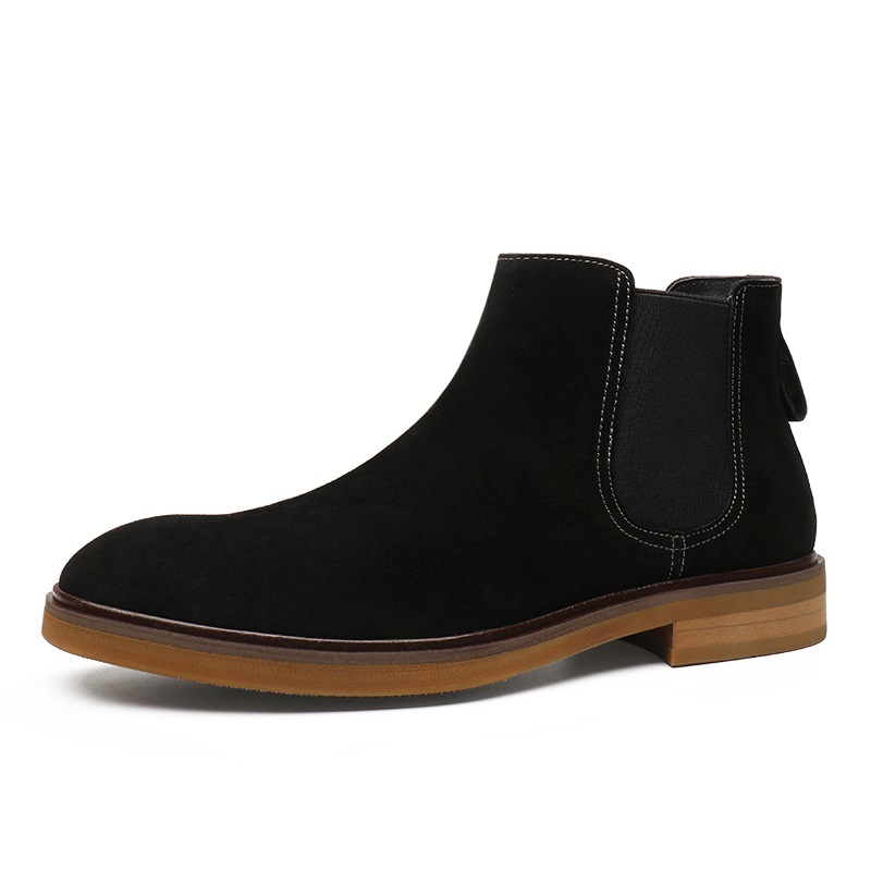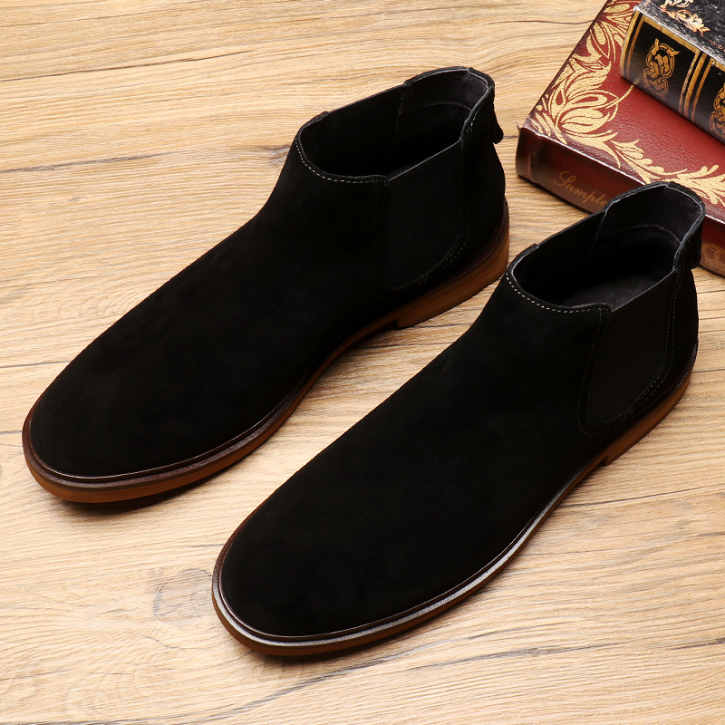 新品♪秋冬 本革 メンズショートブーツ サイドゴアブーツ レザー 牛革 ヨーロピアン スエード★ブラック DJ121a★24cm