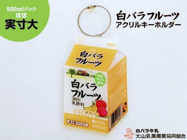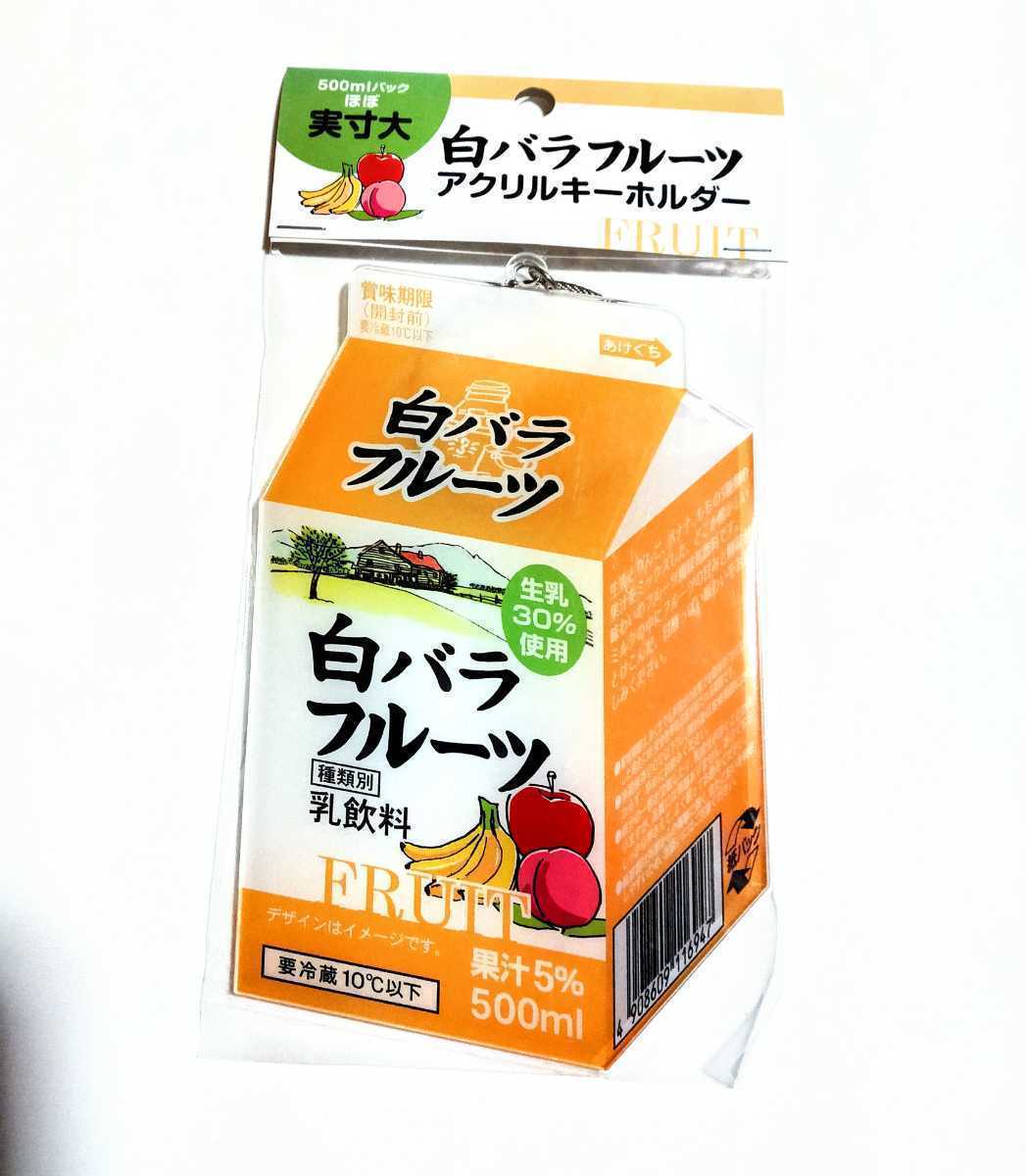 白バラフルーツ500ml紙パックのイメージをデザインしたアクリル製のキーホルダーです。