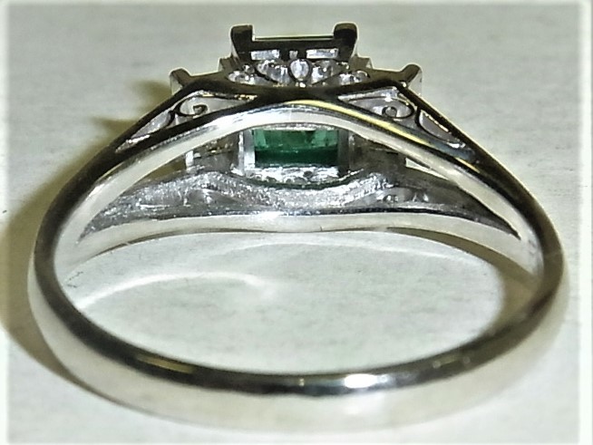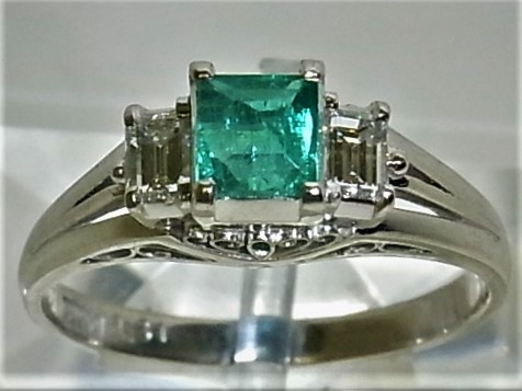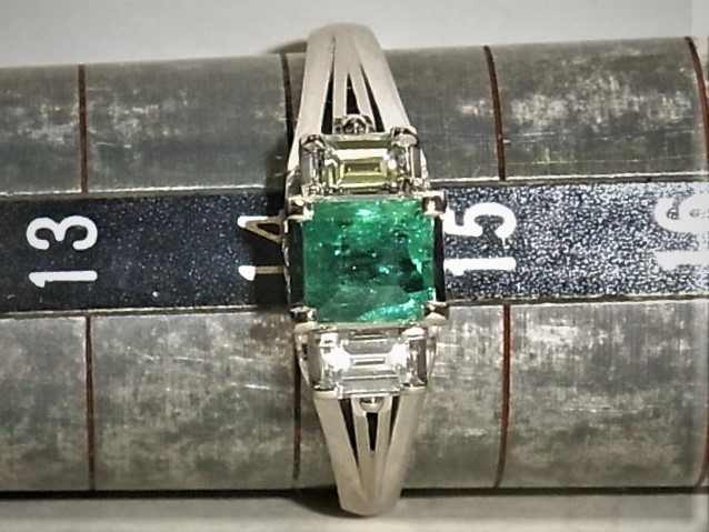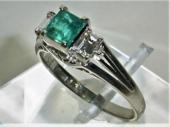 【東京 谷中 質屋おぢさん】Pt900 プラチナ リング 指輪 エメラルド0.57ct 角ダイヤ2ヶ0.31ct