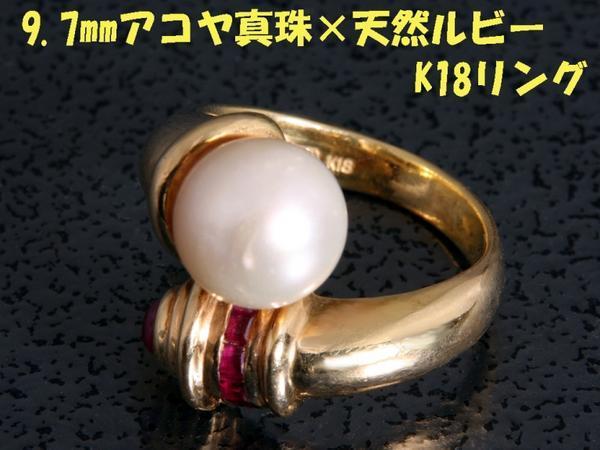 ★☆見て!K18金9.7mmアコヤ真珠とルビーのリング指輪12号!MJ-114