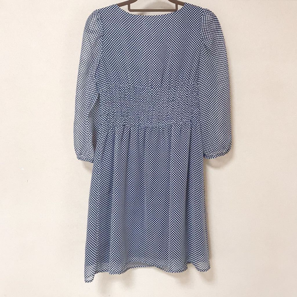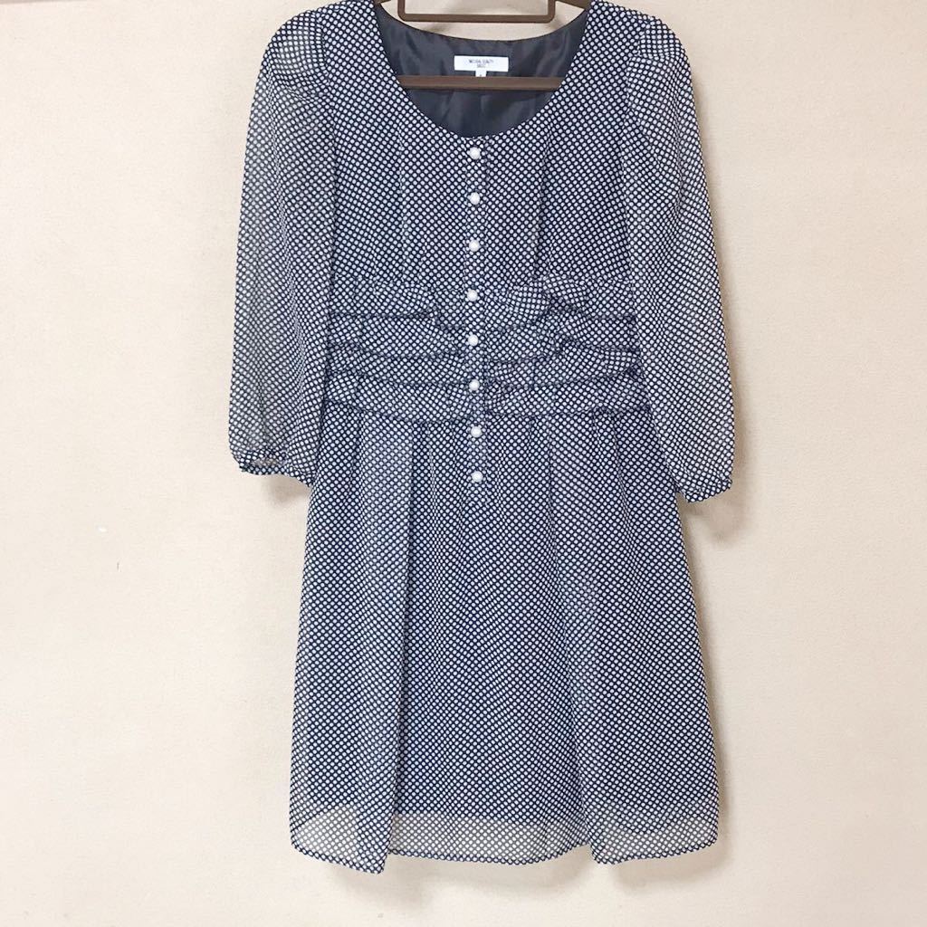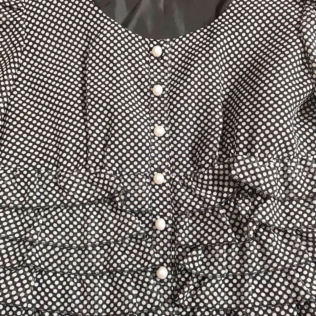 黒地に白のドット柄が映えるひざ丈ワンピースです。