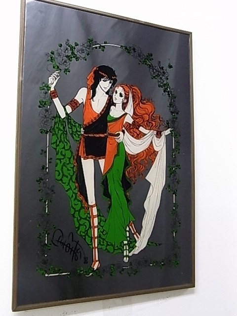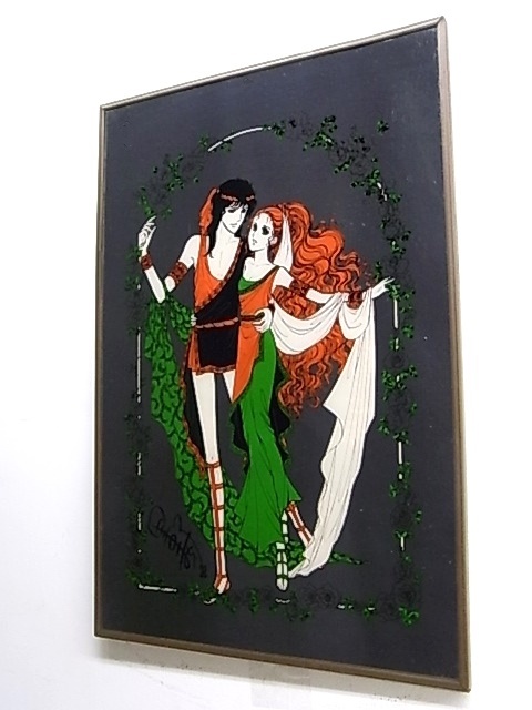| e4142 鏡 壁掛け 里中まち子 絵 インテリア レトロ 45×30.5cm | |