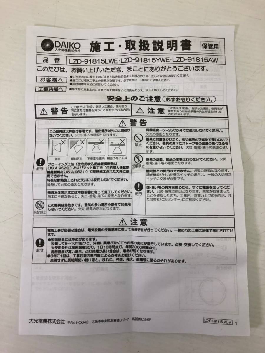 A108-1 ☆未使用品☆ DAIKO シーリングダウンライト2点セット LZD-91815LWE | |||||||||||