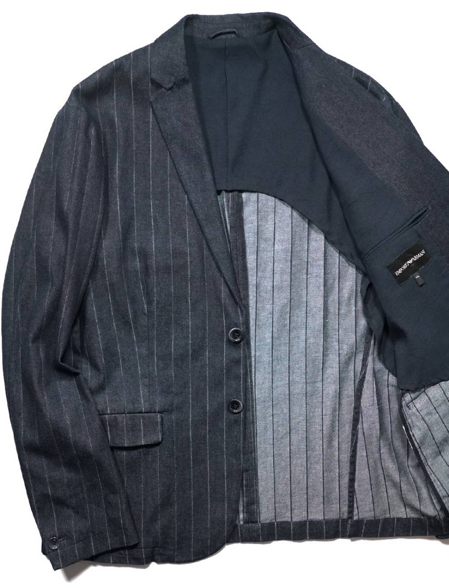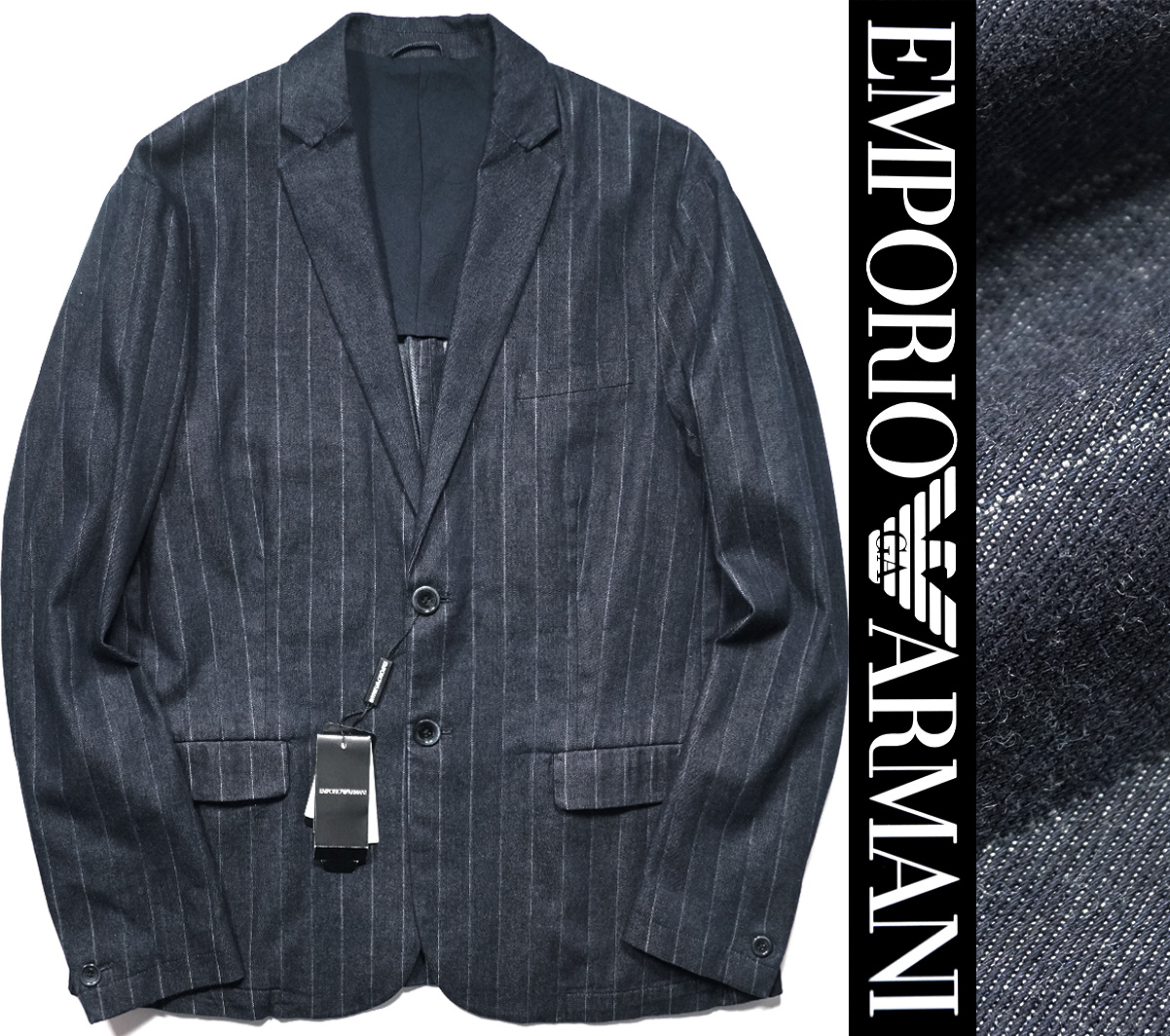 新品8.7万【アルマーニ ARMANI】通年/高級感と清潔感を併せ持つ洒脱な佇まい/テーラードインディゴデニムジャケットS/日本M相当/D3308