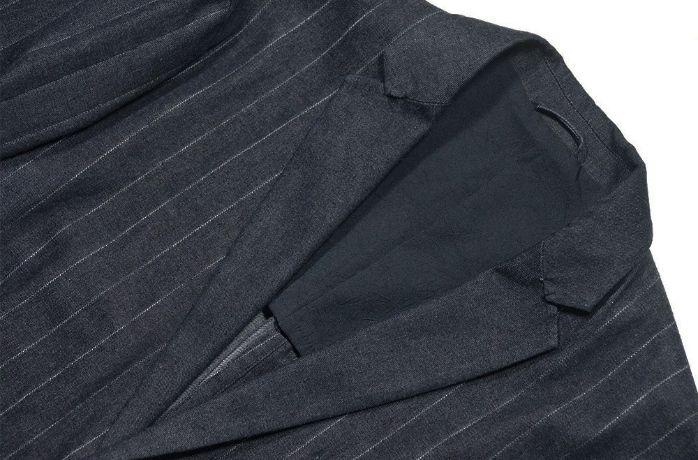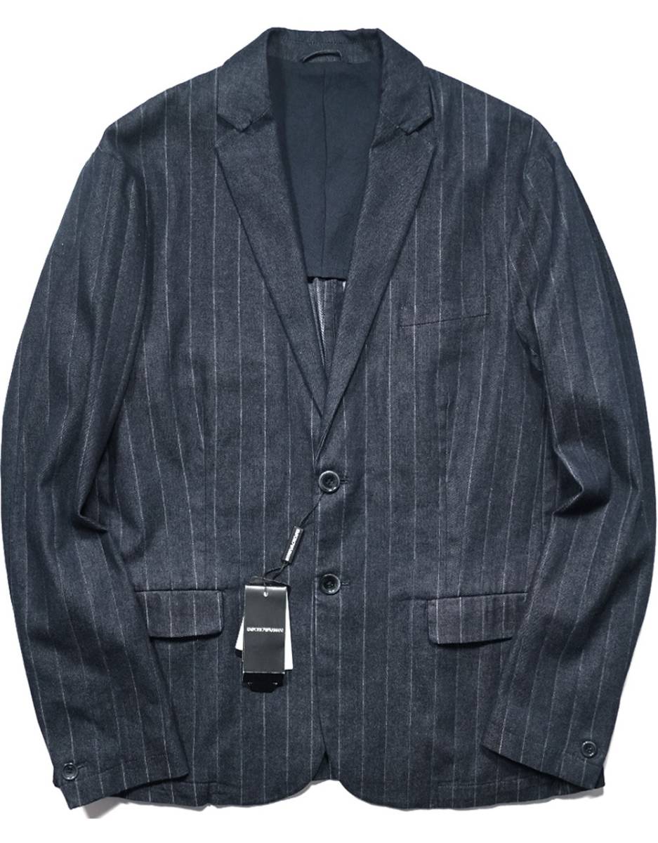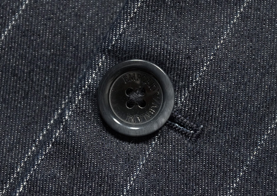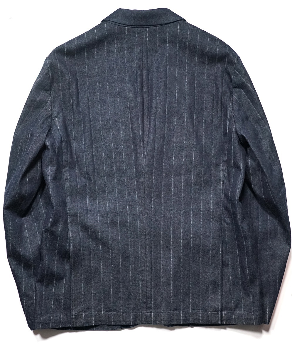 こちらは、アルマーニから通年モデル/高級感と清潔感を併せ持つ洒脱な佇まいストライプインディゴ/テーラードデニムジャケットのご紹介になります。