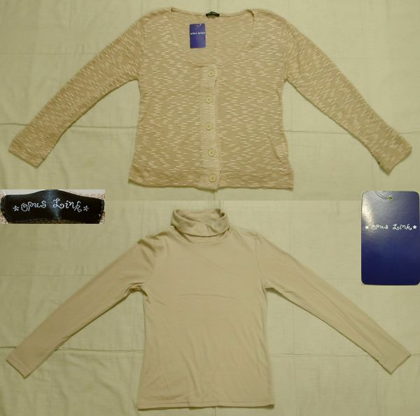 表示サイズ:M(B79~87、T154~162) 素人平置き採寸:(アウター)身幅49、着丈56 (インナー)身幅41、着丈56