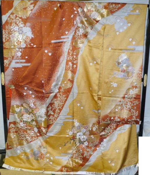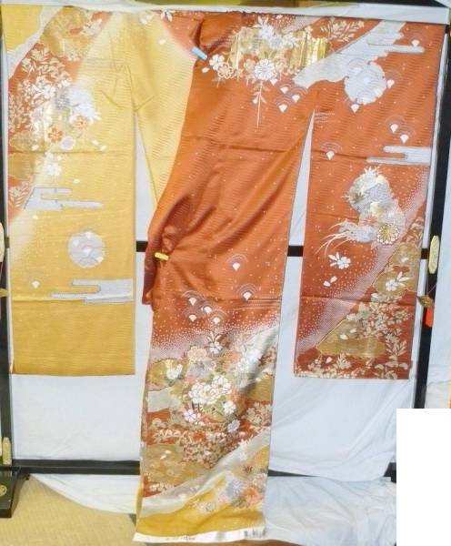 ◆♪【☆振袖☆未仕立☆】☆絹100%  ●丈:約170cm・袖丈:120cm・裄:70㎝●共八掛付●ノークレームノーリターンでのご落札をお待ちしております。