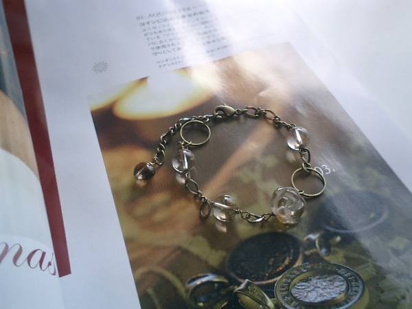 巴里の小さな宝石屋さんシリーズです♪幻想と怠惰・巴里の路地裏をイメージしたブレスレットです♪儚げで繊細なイメージで作りました♪神秘的なスモーキークォーツは10ミリの丸玉です♪可憐な13ミリのスモーキークォーツの薔薇と8ミリのハートを合わせて秋のロマンチックしています♪長さは全長22センチ位で調節自由です♪お揃いのネックレスや同じシリーズも出品しています♪シンプルで長く着けられるデザインを考えて作りました!ハンドメイドをご理解頂いてノークレーム、ノーリターンでお願いします