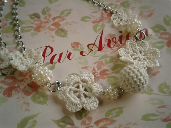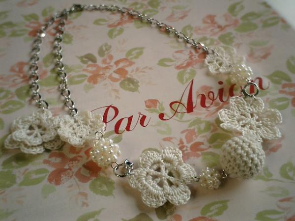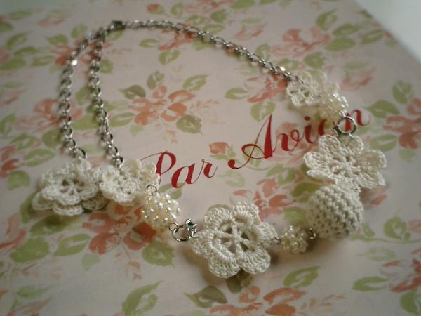 時々少女(?)になりたくて♪オフホワイトのふんわりやさしいネックレスです♪オフ・ホワイトの編みボールは20ミリ、淡水パール玉は9ミリから13ミリ位までの大きさ違いです♪編みフラワーは20ミリから36ミリくらいまでの大きさ違いです♪ジルコニアリングを合わせて大人のロマンチックしています♪シンプルでいつまでも着けられるデザインを考えて作りました!ネックレスの長さは全長70センチ位で調節自由です♪チョーカー風にしたりぐるぐる巻いてブレスレットにしても可愛いです♪カジュアルからロマンチックまでお楽しみいただけます。お揃いのブレスレットも出品予定です♪ハンドメイドをご理解頂いてノークレーム、ノーリターンでお願いします