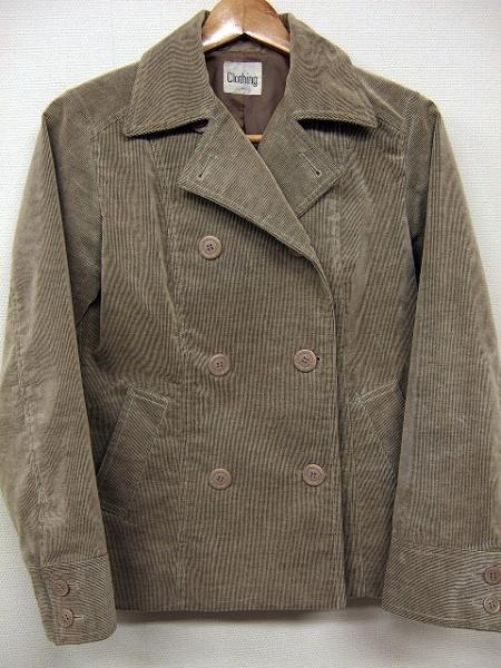 Clothing コーデュロイショートピーコートです。中綿入りではないのでスッキリ着れ、これからの季節にもピッタリ。色はベージュです。◆サイズは11で着丈約62cm・肩幅約39.5cm・袖丈約58cm・身幅約47cmです。◆USEDですが綺麗な状態です。◆