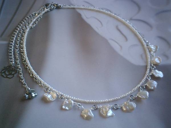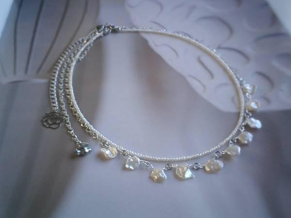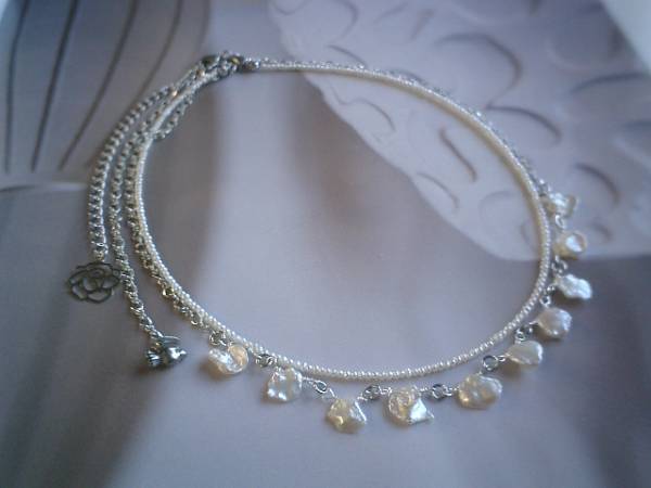 パリの子供たちシリーズです♪キュートな素材を集めて♪2本セットです♪可憐な淡水パールの組み合わせで楽しんでいただけます♪淡水パールは繊細なオフホワイトの8ミリから10ミリ位の芥子パールです♪長さは全長56センチ位で調節自由です♪チョーカー風にしたりブレスにしても可愛いです♪可憐な2ミリの淡水パールは合わせやすいシンプルなデザインです♪長さは38センチ+アジャスター13センチで最長51センチ位です♪2本ともシンプルなデザインなのでいろいろな組み合わせで楽しんでいただけます♪こちらは同じタイトルでセットでも出品しています♪ハンドメイドをご理解頂いてノークレーム、ノーリターンでお願いします