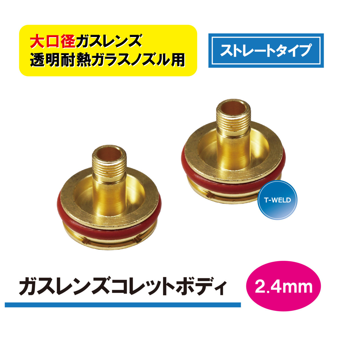 TIG 溶接 WP-17/18/26 大口径ガスレンズ 「ストレートタイプ」 透明耐熱ガラスノズル用 ガスレンズコレットボディ 2.4mm