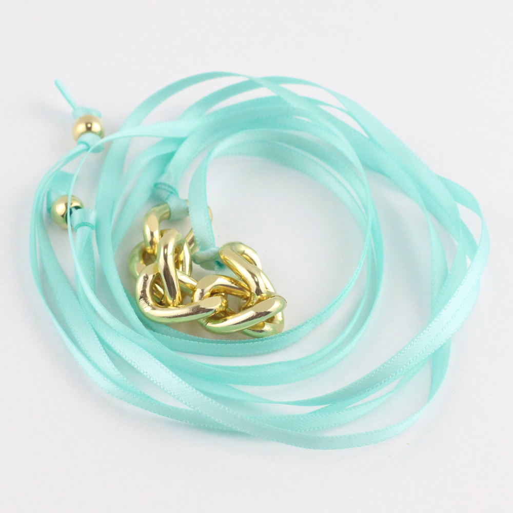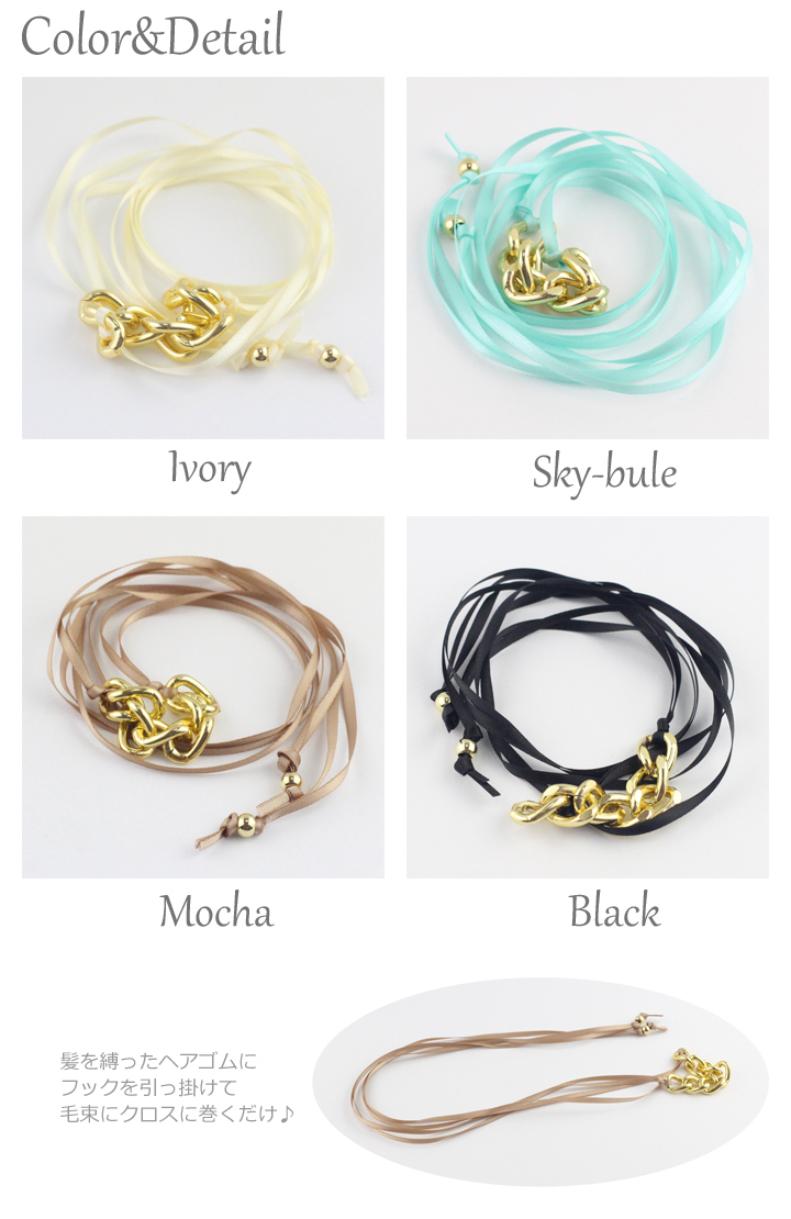ポニーフック/サテン 紐 リボン ゴールドくさり pn128☆水色/ワイヤーポニー ヘアアクセサリー 髪飾り ヘアアレンジ